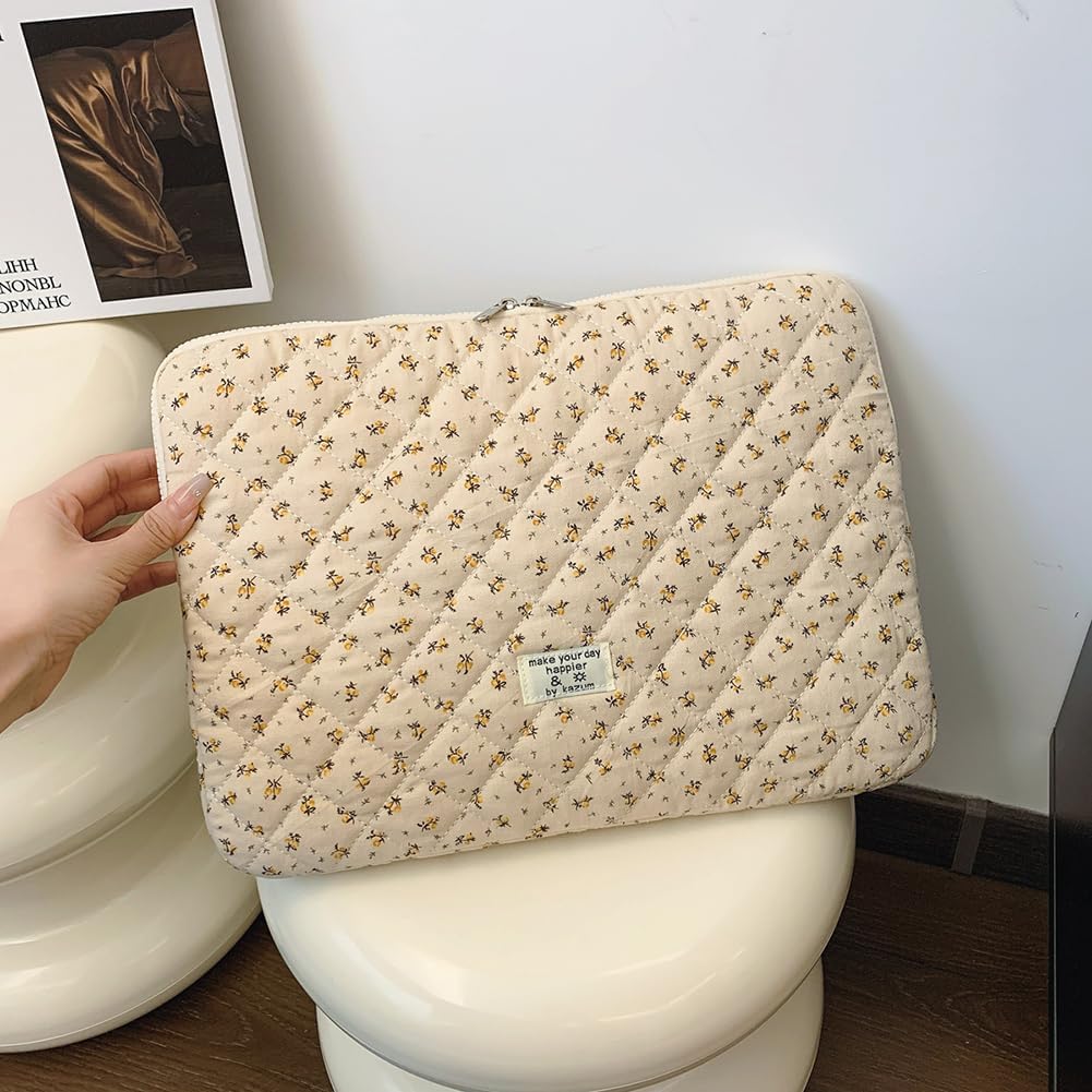Puffy Laptop Sleeve 13-15.6 Inch Cute Quilted Laptop Protective Case Padded Floral Computer Sleeve for MacBook (A-Yellow, 13 Inch)