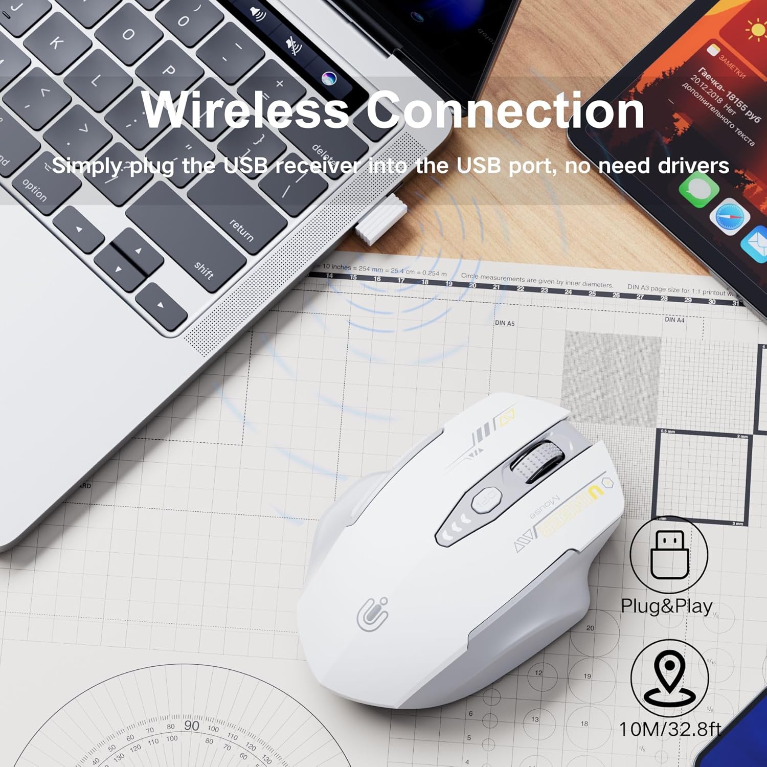 - Plug and Play, Wireless Connectivity:Our 2.4GHz wireless mouse offers seamless and efficient performance, ensuring a stable connection with minimal interference. Simply plug the USB receiver into your device's USB port, no need drivers