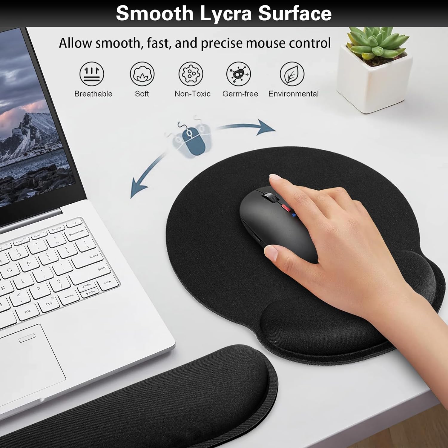- 【Excellent Quality】-The mouse pads has smooth and breathable Lycra fabric+gel filled wrist support for keyboard+memory foam filled keyboard pad,which is comfortable and durable to use.The surface is made of waterproof SBR material and fine Lyrica cloth.Completely non-toxic and durable.
