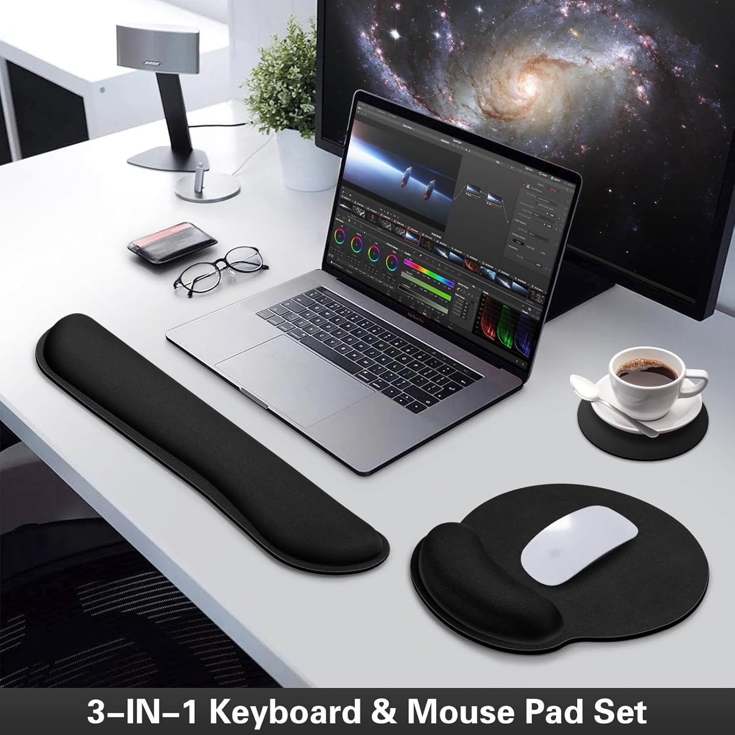 - 【3-IN-1 Keyboard Wrist Rest】-The size of the mouse pad with wrist guard is 10x9 in, the size of the keyboard wrist rest cute guard is 17.2x3.3 in,and the diameter of the cup pad is 3.9 in.The Mousepad with wrist support can be used with notebook computers,desktop computers and game consoles,and is suitable for office,home,dormitory or other occasions.