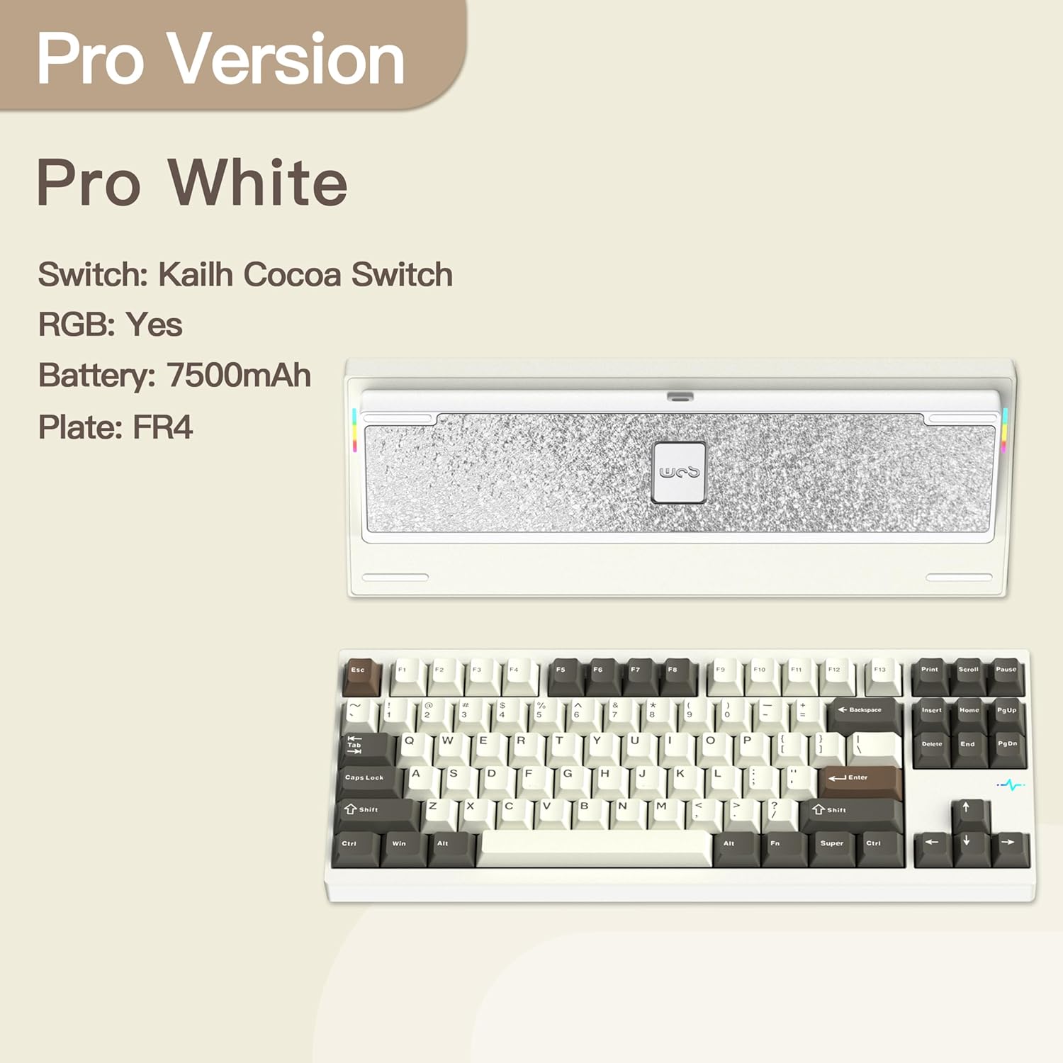 KEEBMONKEY WOBKEY Crush 80 Reboot CNC Aluminum 5-Second Quick-Release Triple-Mode Connectivity Mechanical Keyboard with Superior Acoustics (Pro White)