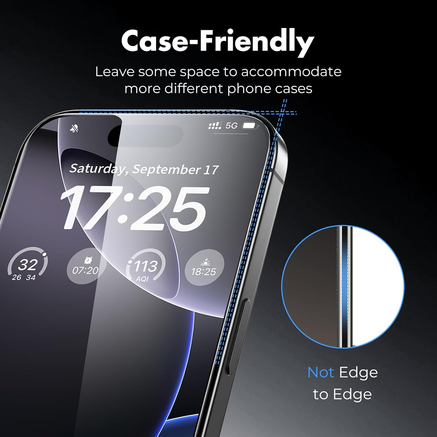 - Perfect fit: 3-pack 9H tempered glass screen protectors designed for iPhone 16 Pro Max 6.9" (2024). These protectors are Slightly smaller than the screen to avoid interfering with Face ID or the front camera, ensuring case compatibility and preventing bubbling.