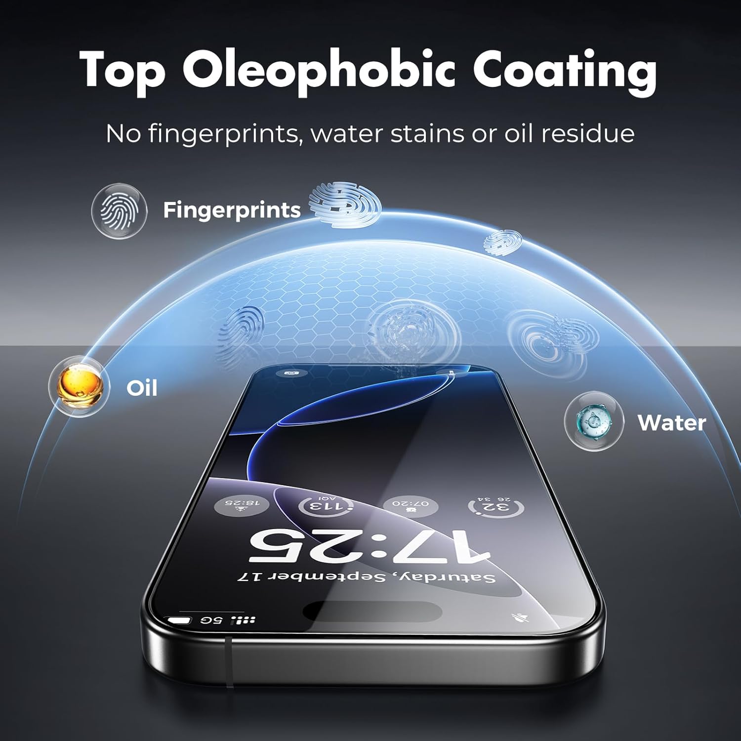 - Double Shatterproof Protection: Made from superior 9H tempered glass, this iPhone 16 Pro Max protector is twice as strong as standard. It resists scratches and survives drops from 6 feet (1.8 meters) with reinforced edges for exceptional safety.