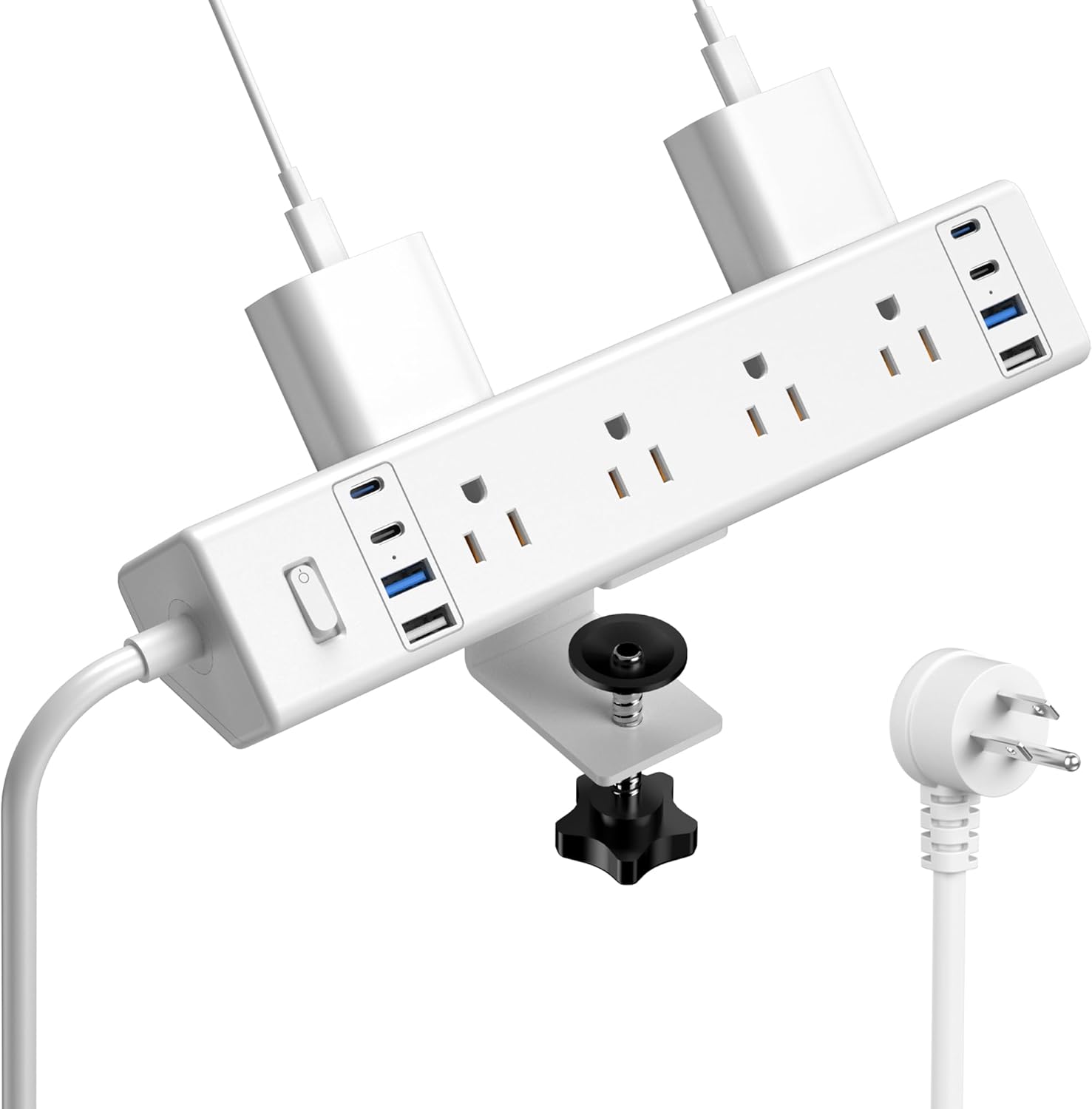 - Special Feature : 2 x 20W USB C Ports, 8 USB Ports, Desk Clamp Outlet, On And Off Switch, Surge Protection