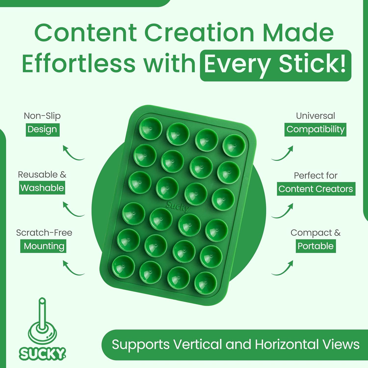 SUCKY Silicone Suction Phone Case Adhesive Mount - Anti-Slip Holder, Hands-Free Fidget Toy, Phone Accessory for iPhone and Android - Sticky Grip for Selfies, Videos, and Tiktok - Pine Green