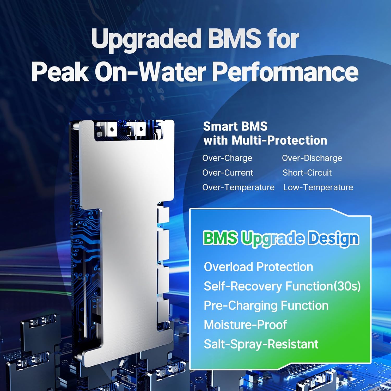 - 【ADVANCED BMS PROTECTION】Lifepo4 battery equipped with safeguards against overcharge, over-discharge, short circuits, and a low-temp cut-off for safe use in all conditions.
