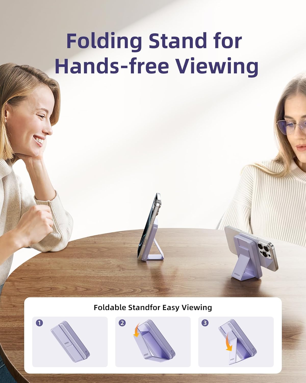 MagSafe Power Bank 10000mAh [3-in-1 with Stand] Wireless Charger, 20W Fast Charging for iPhone 16/15/14 Series, Samsung Galaxy, AirPods | Slim Portable Magnetic Battery | Purple