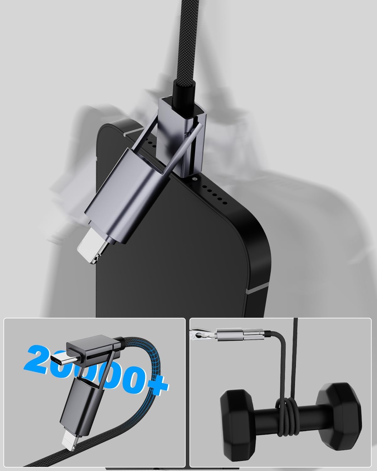 - New Upgraded 4 in 1 Multi Charging Cable: Simplify your charging setup with our versatile 4-in-1 usb-c cable. It combines 4 ports - USB-C to L port, USB-C to USB-C port,USB-A to USB-C port and USB-A to L port. Charge and sync your devices without the hassle of switching between multiple cables. (Note: If your devices want to achieve fast charging, please use a USB C power adapter not the USB charger)