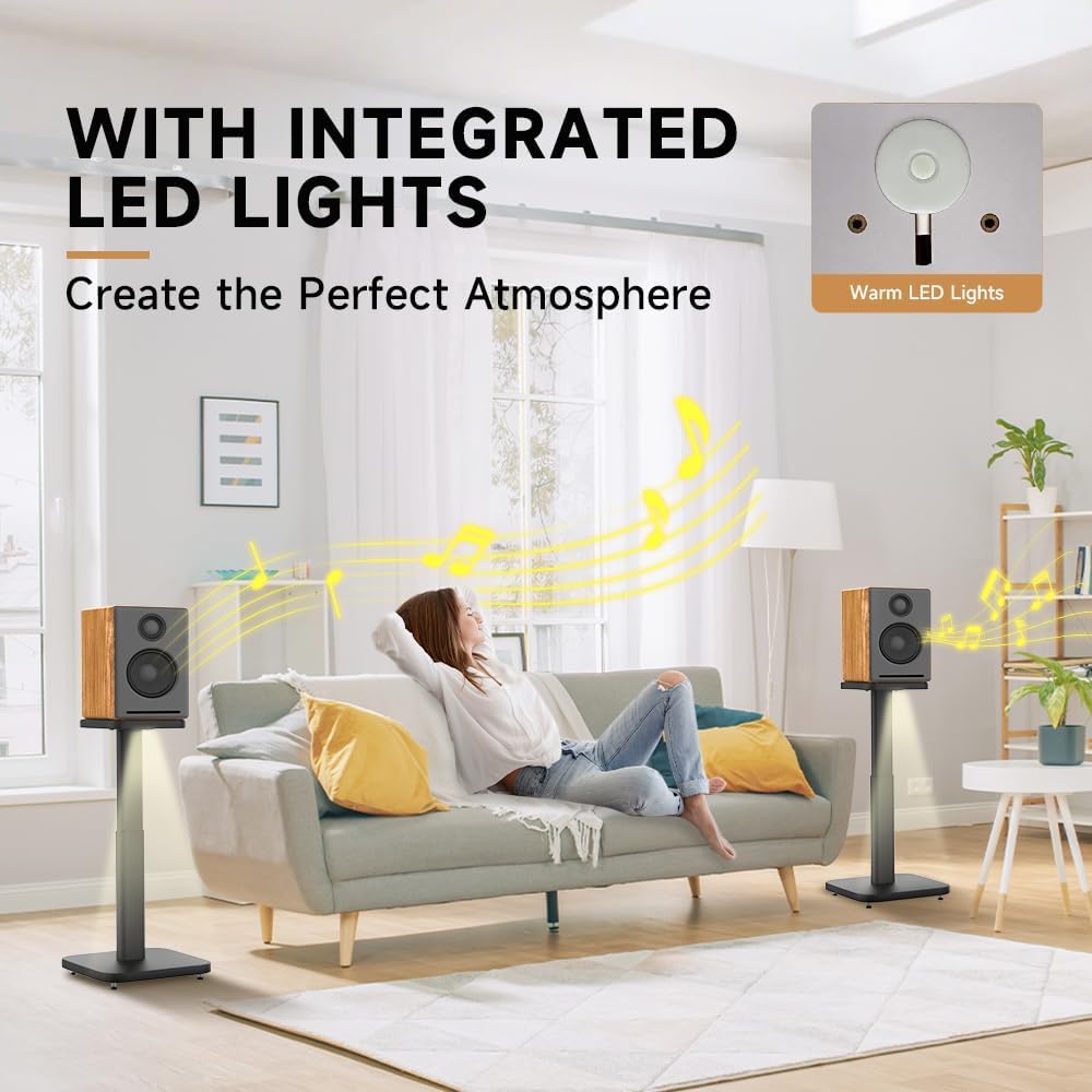 - Warm LED-Illuminated Ambiance: Our universal speaker stands built-in warm LED lights set perfect mood for movie nights and parties, complementing your surround sound system while adding a modern touch to your décor