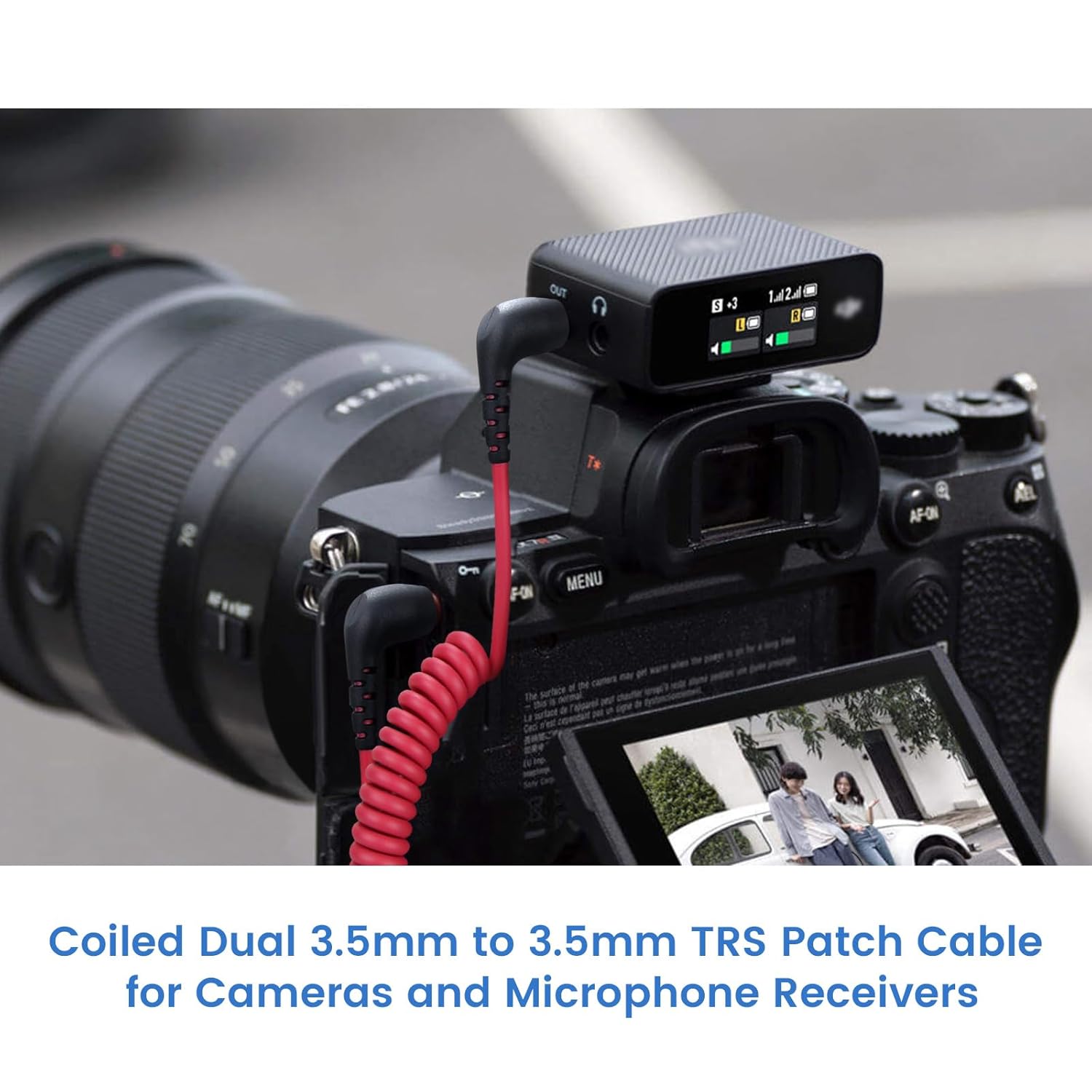 2-Pack 3.5mm Microphone Cable Compatible with Rode Wireless Pro / Wireless Go 2 / DJI Mic 2 and Hollyland Lark M1 M2 150 Max Duo, Coiled Dual 3.5mm TRS Patch Cable Audio Mic Cord for DSLR Cameras