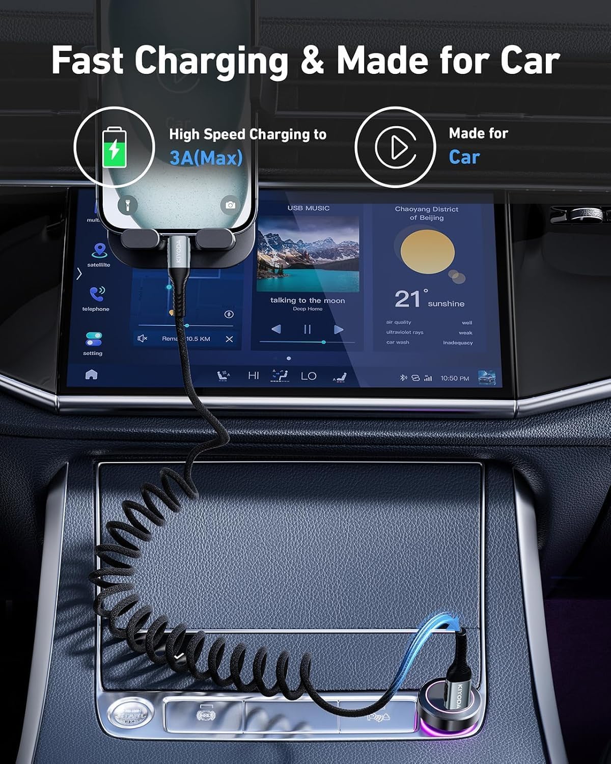 - Coiled USB C to USB C Cable: This coil cable is designed with retractable spring design, no tangle, no knot, not taking up space and easy to carry and use. The automatic rebound design for car charging saves space on the center console and avoids clutter. It is perfectly compatible with Apple's CarPlay and Android Auto, with fast charging and data synchronization.