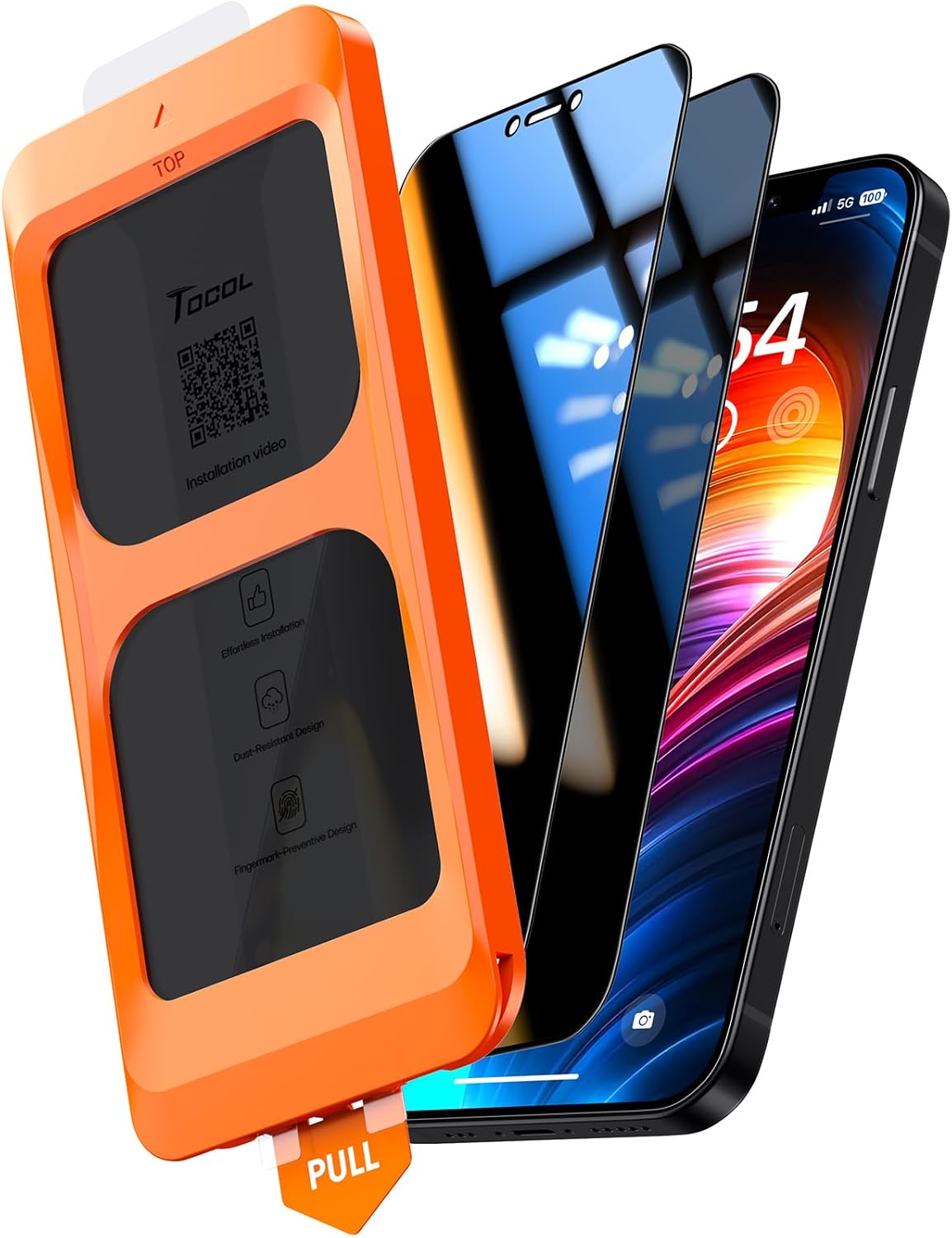 TOCOL for iPhone 12 Privacy Screen Protector True 25°Anti Spy 9H+ Hardness Tempered Glass for iPhone iPhone 12 Full Coverage Screen Protector Easy Installation 2 Pack