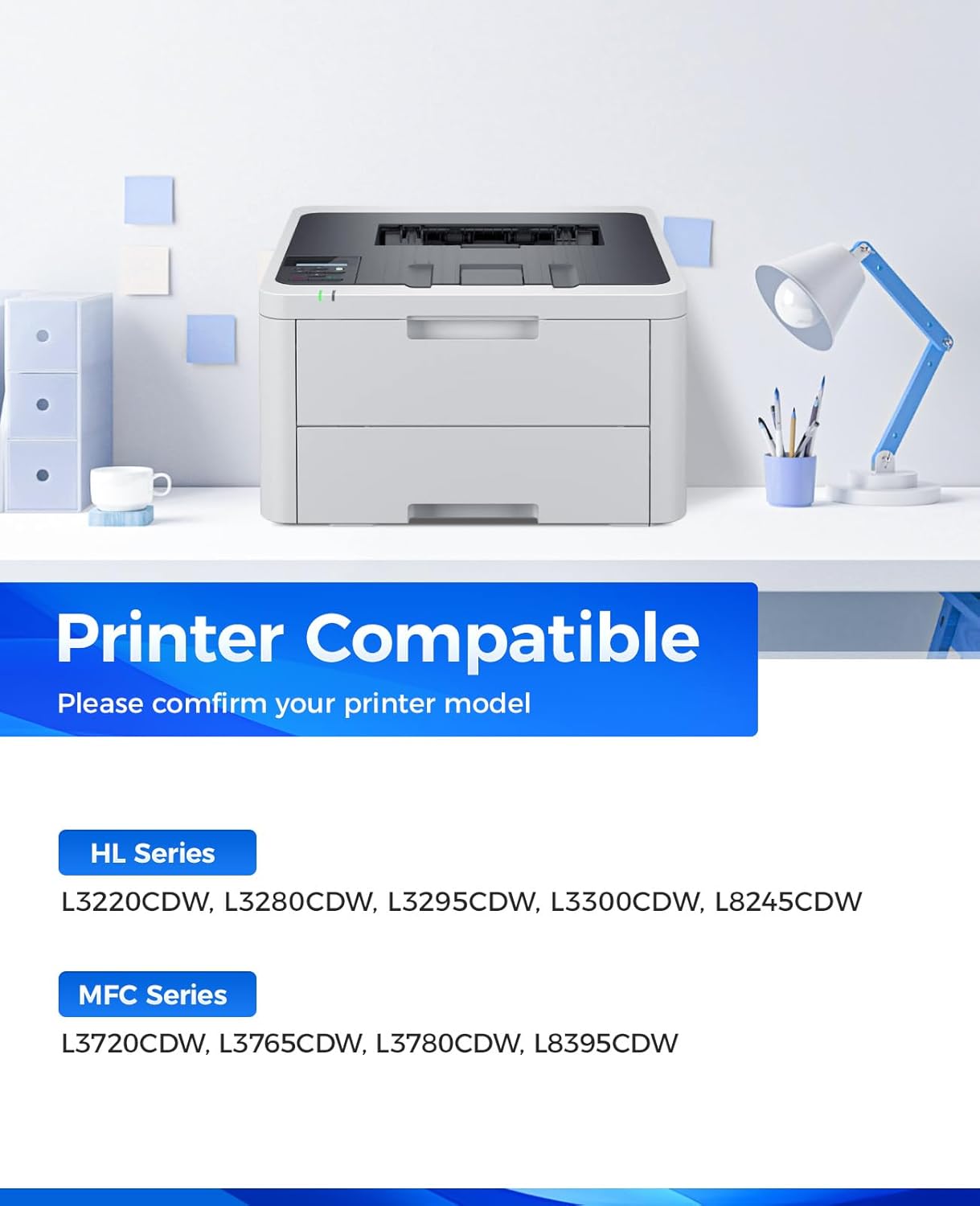 - Compatible Printers: Compatible with Brother MFC-L3720CDW MFC-L3765CDW MFC-L3780CDW MFC-L8395CDW HL-L3280CDW HL-L3220CDW HL-L3295CDW HL- L3300CDW HL-L8245CDW Series Printers.
