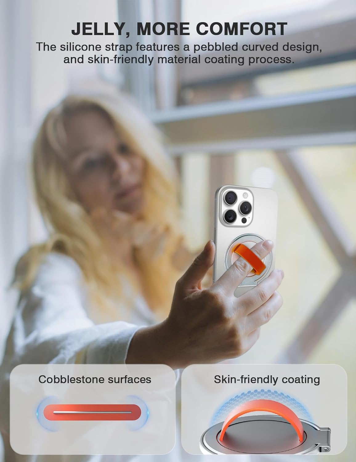 - [Jelly Touch - Excellent Comfort] We've crafted these cell phone grips with your comfort in mind! They're made of ultra comfortable, skin-friendly silicone grips that are typically used in aerospace-grade applications. The silicone band features a pebbled curved design and skin-friendly material coating process, providing amazing comfort for your daily life.