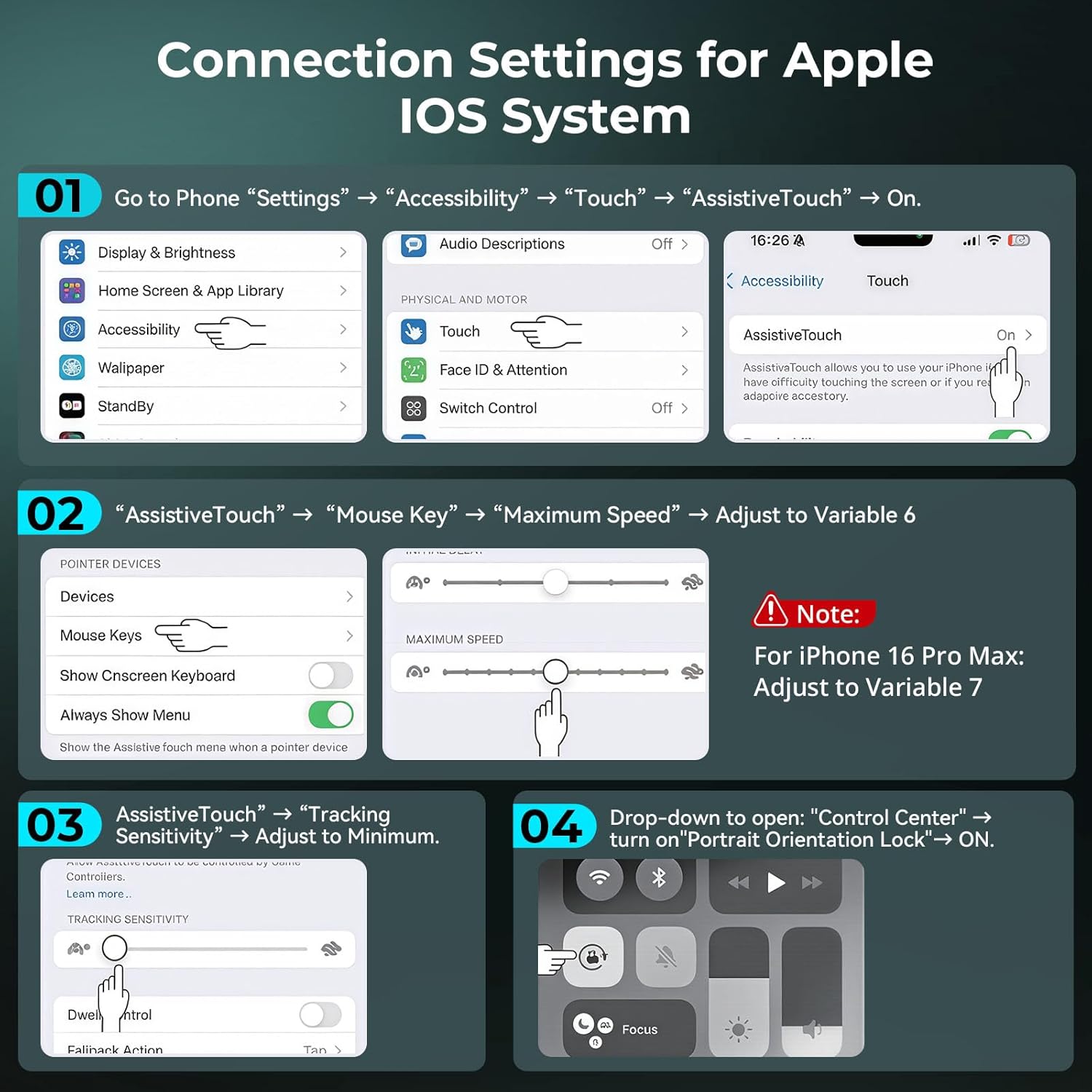 - Pre-purchase Notice: 1. When using the 67mm filter system, the phone cannot be connected to the cage via for MagSafe at the same time, and the phone needs to be fixed with a phone clip. 2. Wireless Remote Control Compatibility: for Android system, for Harmony system, for iOS model for iPhone 12-15 full series, for iPhone 16 Pro; when adapting for iPhone 16 Pro Max, the mouse sensitivity of the mobile phone's auxiliary touch function needs to be adjusted to the 7th level