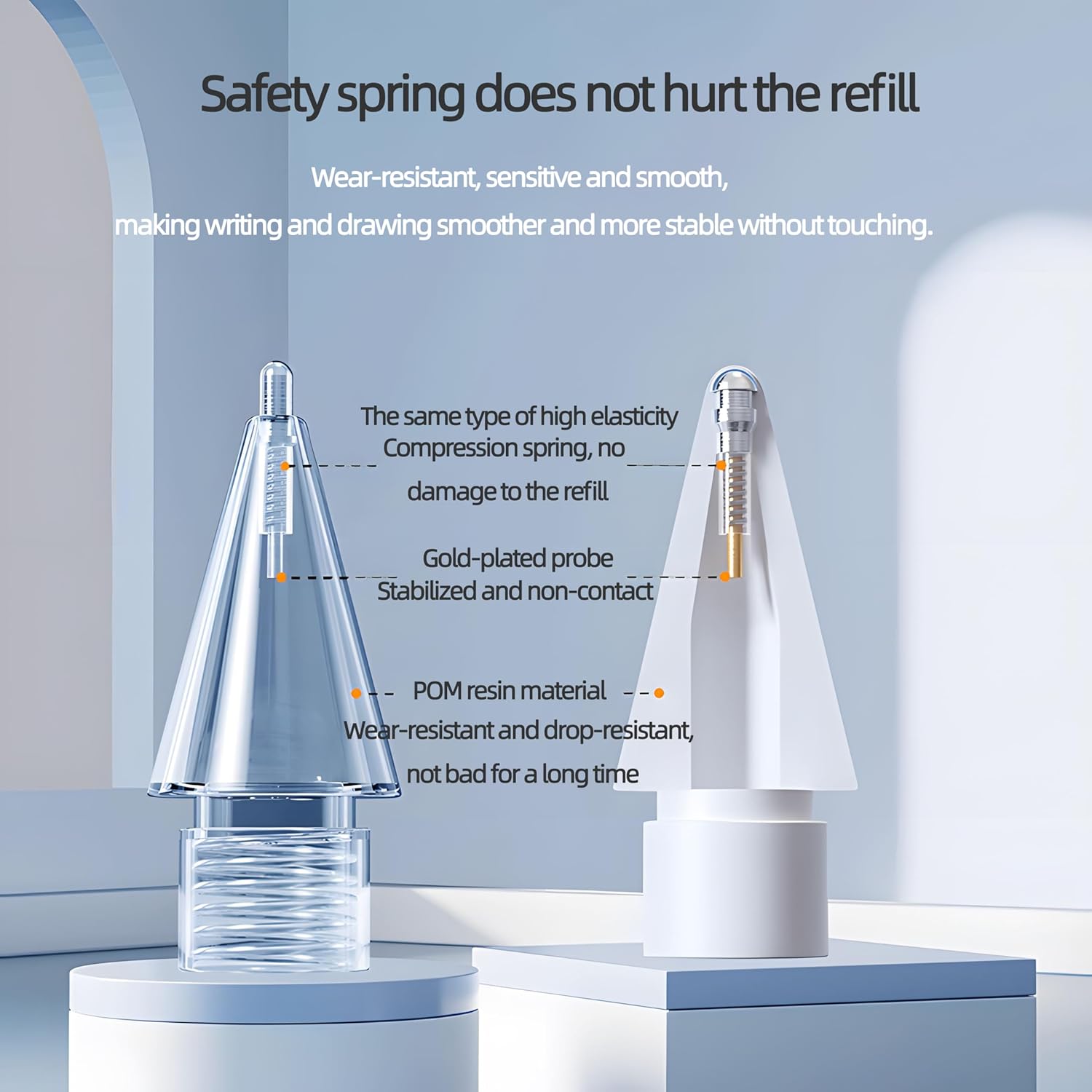 - 【Wear-Resistant, Sensitive and Smooth】: The upgraded gold-plated metal iPencil nib is highly polished and wear-resistant, so it won't scratch the iPad screen. It has a built-in highly elastic compression spring with the same high-pressure sensitivity as the original, which makes writing and drawing smooth, stable and non-contact.
