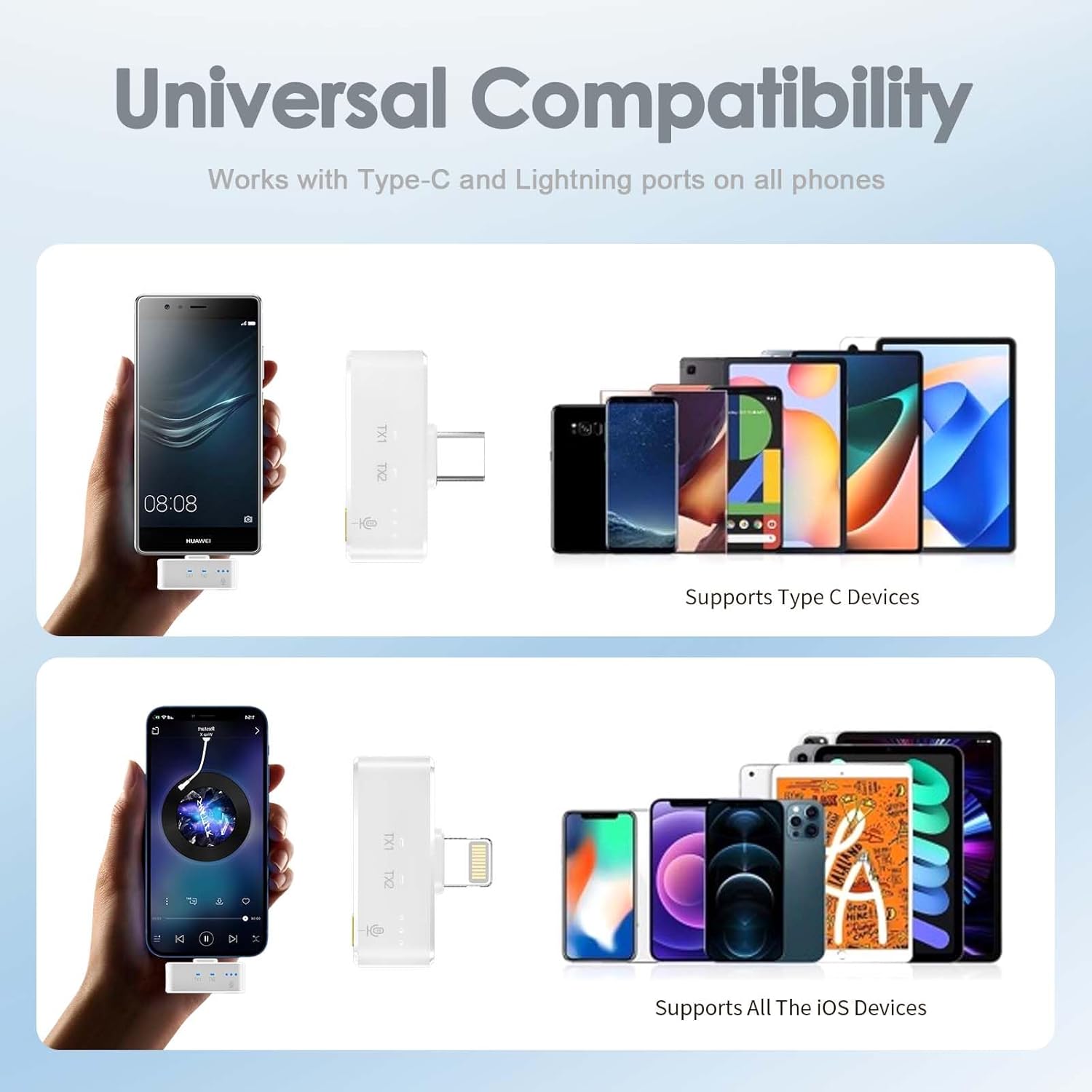 - 【Plug-and-Play Convenience】Start recording in seconds with our wireless lapel microphone compatible with both Lightning and Type-C connectors. Automatic pairing and lightning-fast 1-second connection mean more time recording and less time fiddling