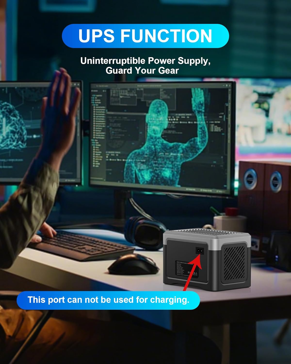 - Versatile Multi-Output Ports: Featuring 1 AC outlet, 2 Type-C, 2 USB-A, and 2 DC ports, this station supports charging for a range of devices—from laptops and cameras to phones and mini-fridges. The UPS feature ensures uninterrupted power during outages, giving you peace of mind.