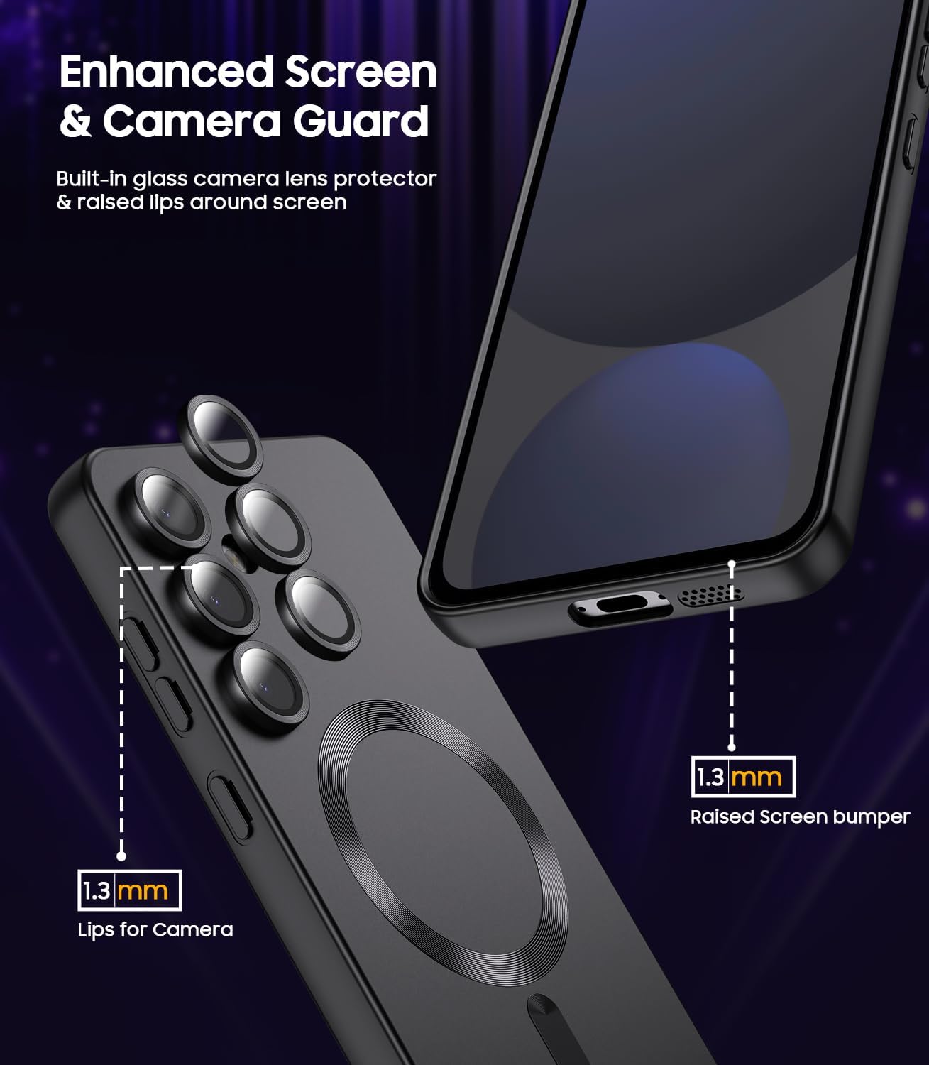 - 【Complete Camera Protection】The built-in camera lens cover ensures full protection for your Samsung Galaxy S24 FE camera, while the raised screen lips (1.5mm) safeguard the device from scratches when placed face down