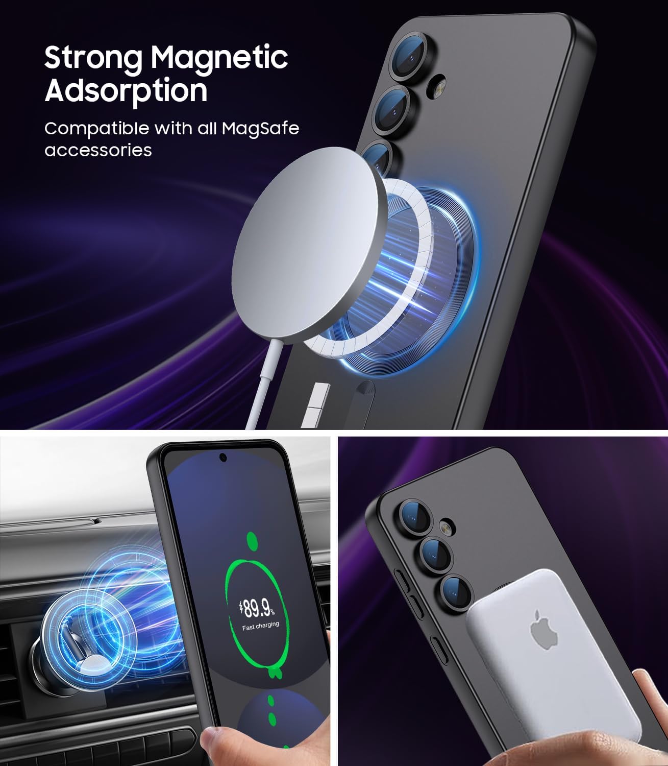 - 【Compatible with MagSafe】Equipped with 38 strong N52SH magnets, this Samsung Galaxy S24 FE magnetic case compatible with MagSafe accessories such as car phone holder, wireless charger, and stand
