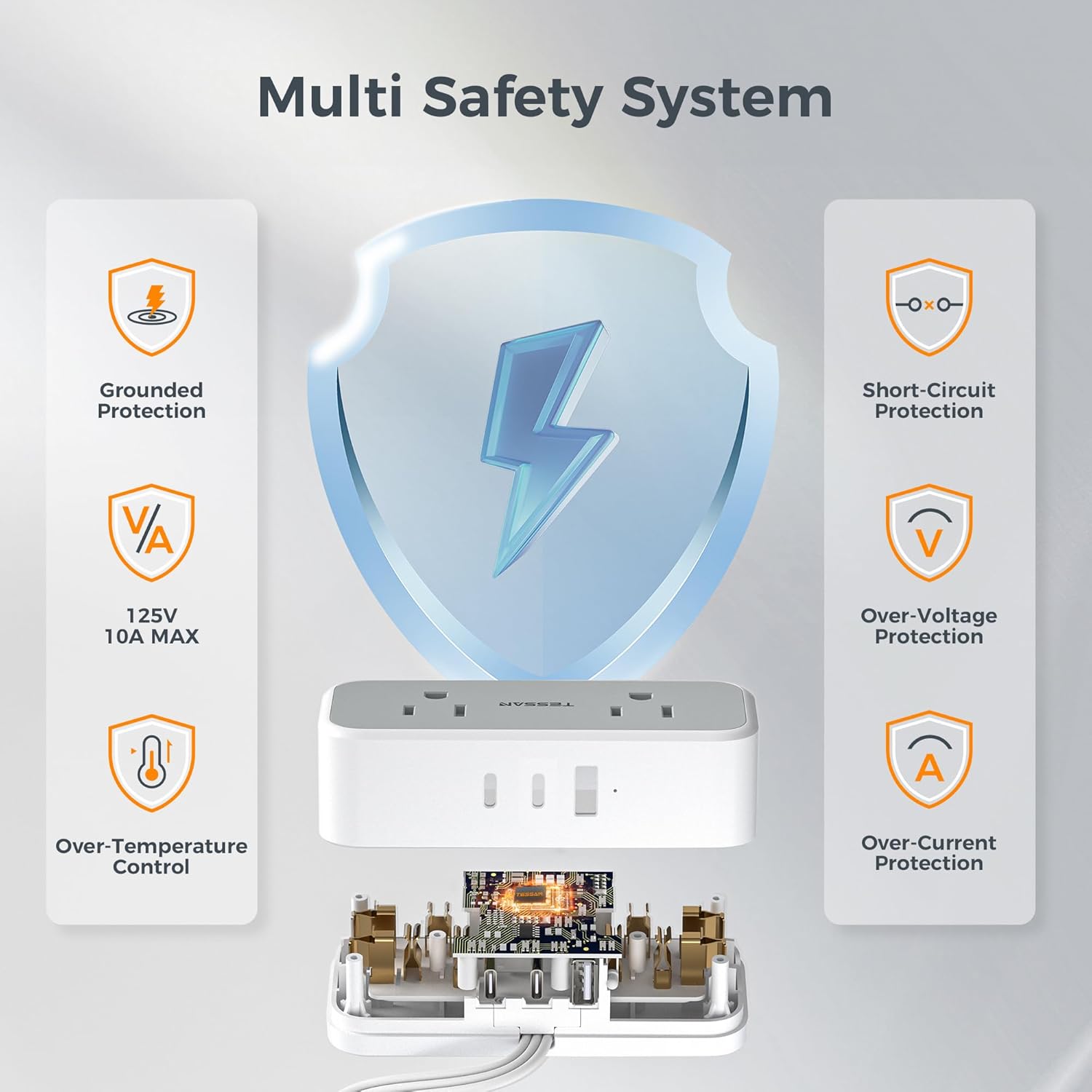 - Flat Plug Extension Cord: With a 0.33 inch depth ultra-thin design, TESSAN power strip flat plug can be easily hidden in tight spaces; The flat wall extension cord is better hidden under carpets, preventing trips, and can even fit through door gaps