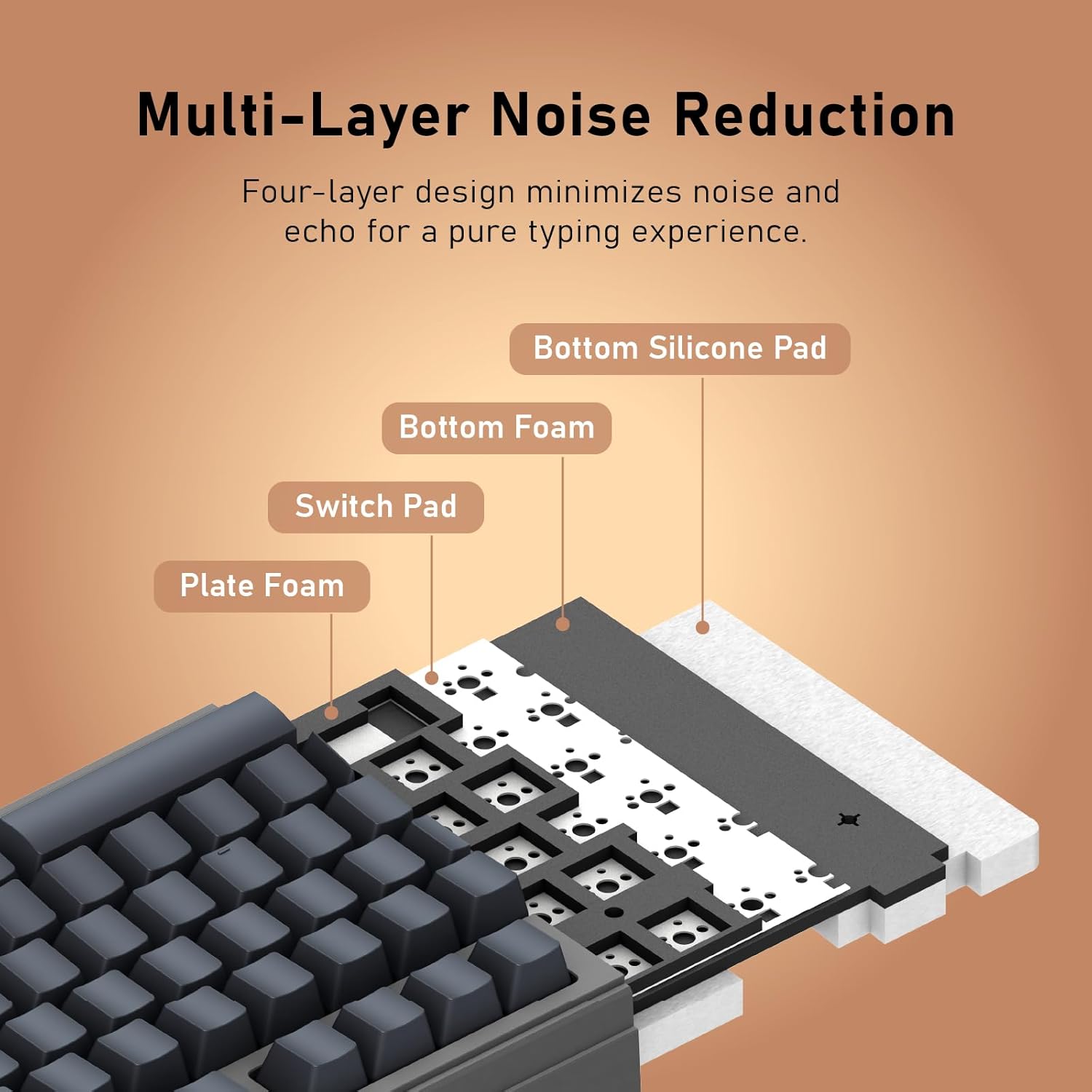 - The Gasket Mount Structure ⚡️ K85R employs a modular design with flexible pads to secure the keys, addressing the uneven feel caused by traditional screw mounting. This ensures a more uniform keypress experience, providing users with a consistent, soft, and pleasant typing experience