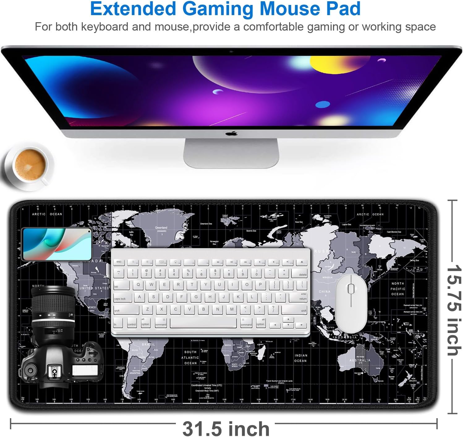 Large Mouse Pad, 31.5x15.7 inch Large Extended Computer Keyboard Mouse Mat, Water Resist Non-Slip Mousepad Rubber Base Long XXL Desk Mouse Pad for Work & Gaming, Office & Home, Grey Map