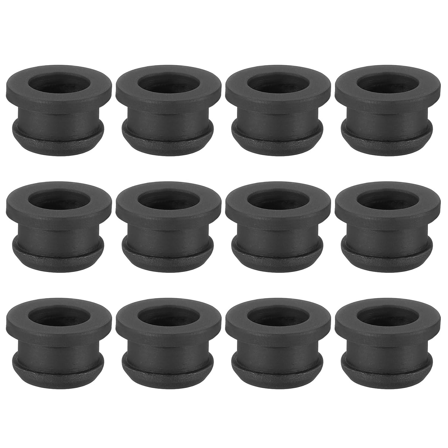 - Color: Black; Material: Silicone Rubber; Drill Hole: 12.5mm / 1/2 Inch; Inside Diameter: 9.5mm / 3/8 Inch; Outside Diameter: 16.5mm / 0.65 Inch; Overall Thickness: 11mm / 0.43 Inch; Packing List: 12 x Rubber Grommets