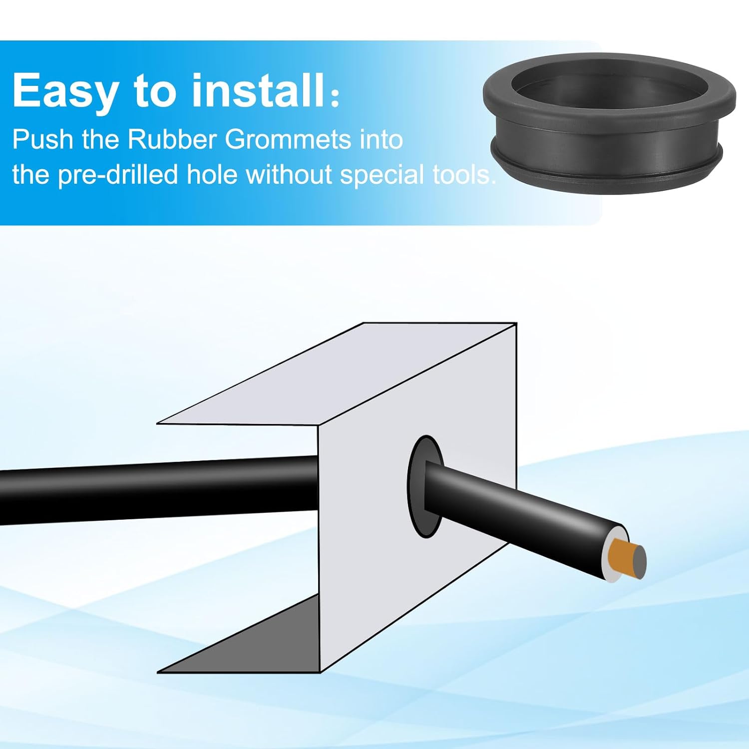 - Advantage: The rubber grommets are made of silicone rubber, which is flexible, durable, folding resistant, and has a strong insulation protection function. It is designed to protect wires from chafing and wear when passing through holes and it can be used for a long time to solve the problem of long-term wire protection and can be used to manage and route cables in a neat and organized fashion.