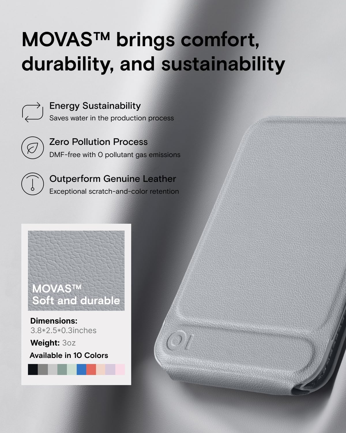 - Soft and durable - Made with MOVAS, the revolutionary vegan leather, that combines a silky touch and resistance to everyday dirt and scratches.