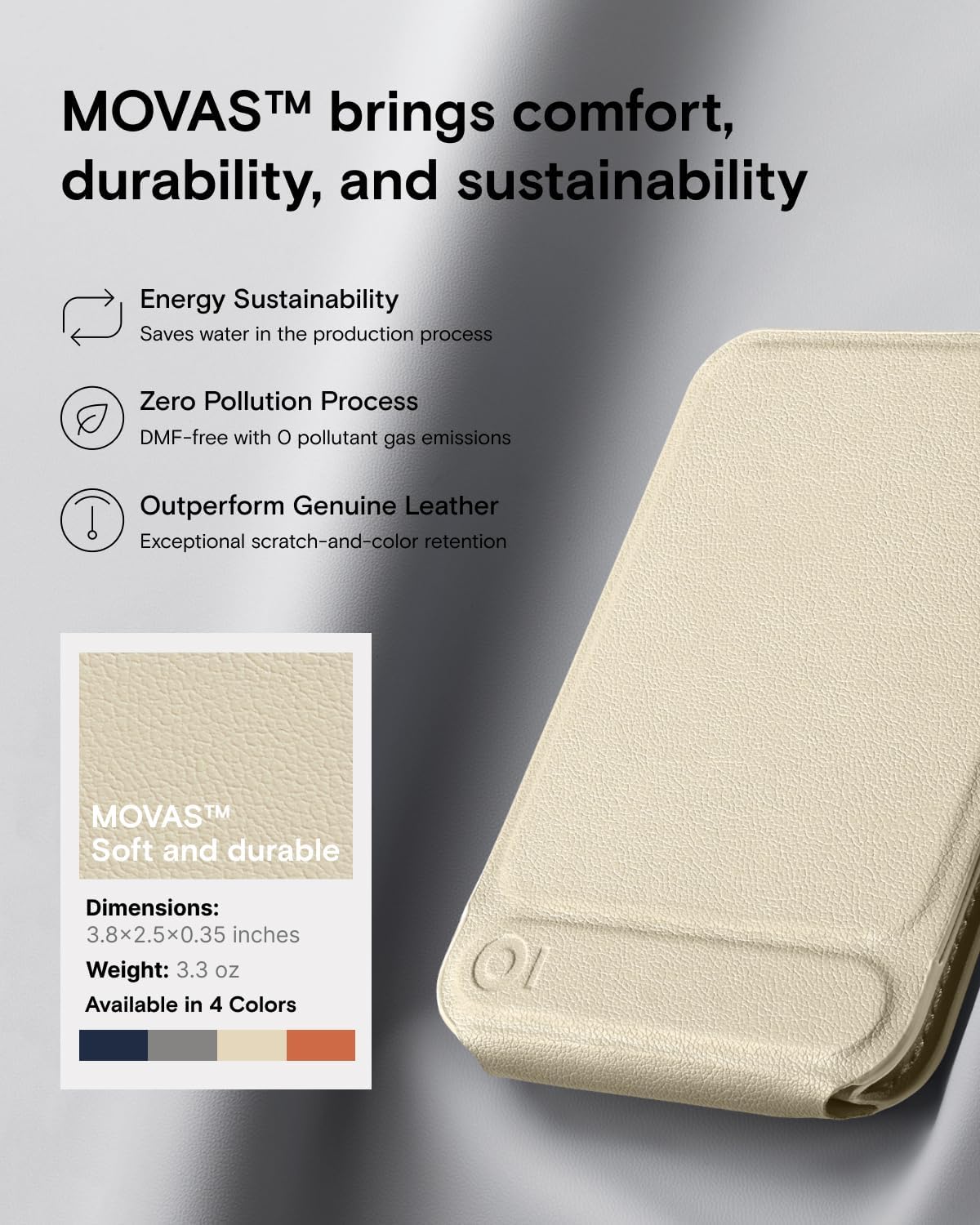 - 3-in-1 & Eco-friendly: This everyday carry features a phone tripod, phone stand and magsafe wallet with a simple fold to transform. It folds into an 8" phone tripod stand in a second. Crafted with the pioneering water-based MOVAS Vegan Leather, it's smooth to the touch while saving water from the manufacturing process.