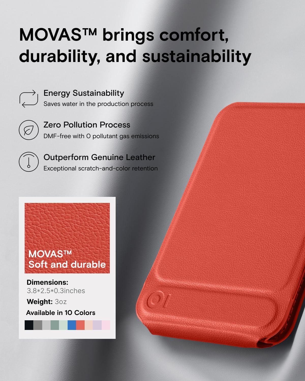 - Soft and durable - Made with MOVAS, the revolutionary vegan leather, that combines a silky touch and resistance to everyday dirt and scratches.