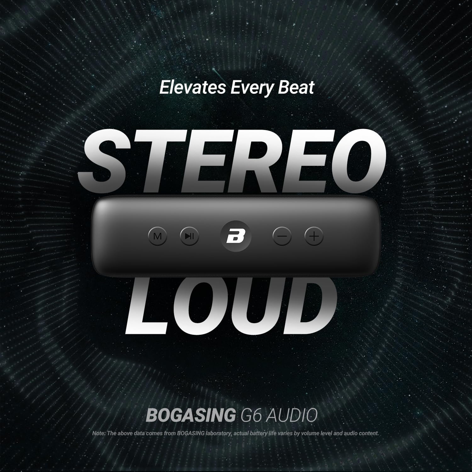 - 【Ultra-Long Playtime】Wherever you go, BOGASING G6 will provide your soundtrack all day. It can go for 35 hours on a single charge (50% Volume), and when it’s time to power back up, you can recharge it quickly via its USB-C port.