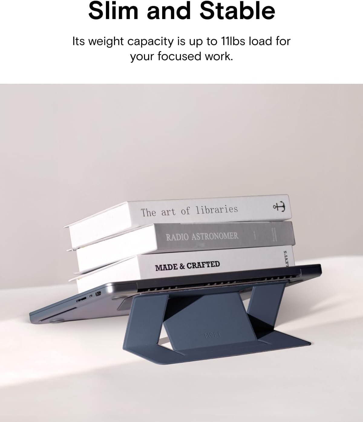 - [Paper-Thin] MOFT laptop stand is only 0.1 in thin and weighs a mere 3 oz, its small mearsurements makes it unfelt when carried and unsee when not in use.