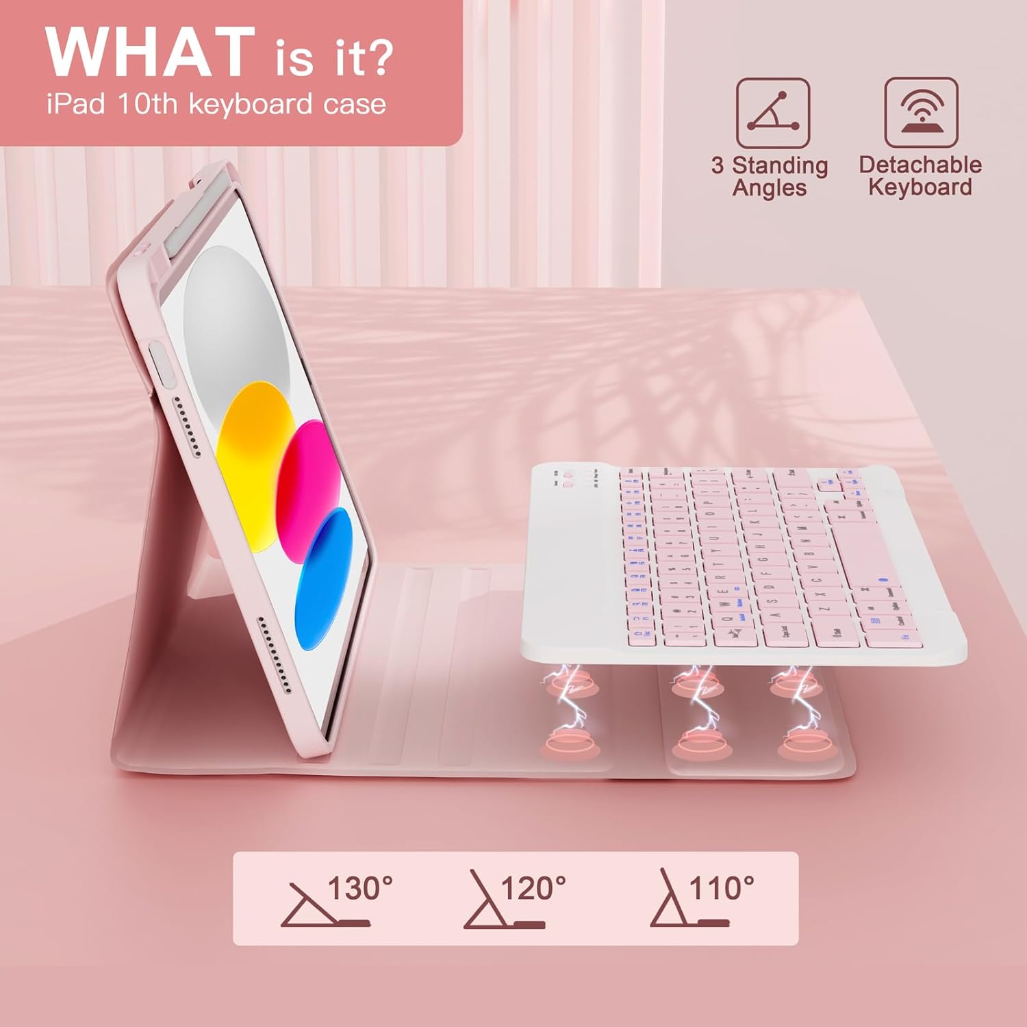 NOKBABO for iPad 11th 10th Generation Case with Keyboard, Magnetic Wireless Detachable Folio case with Pencil Holder, Keyboard for iPad 11th(A16,2025) & ipad 10th Generation(2022) - Light Pink