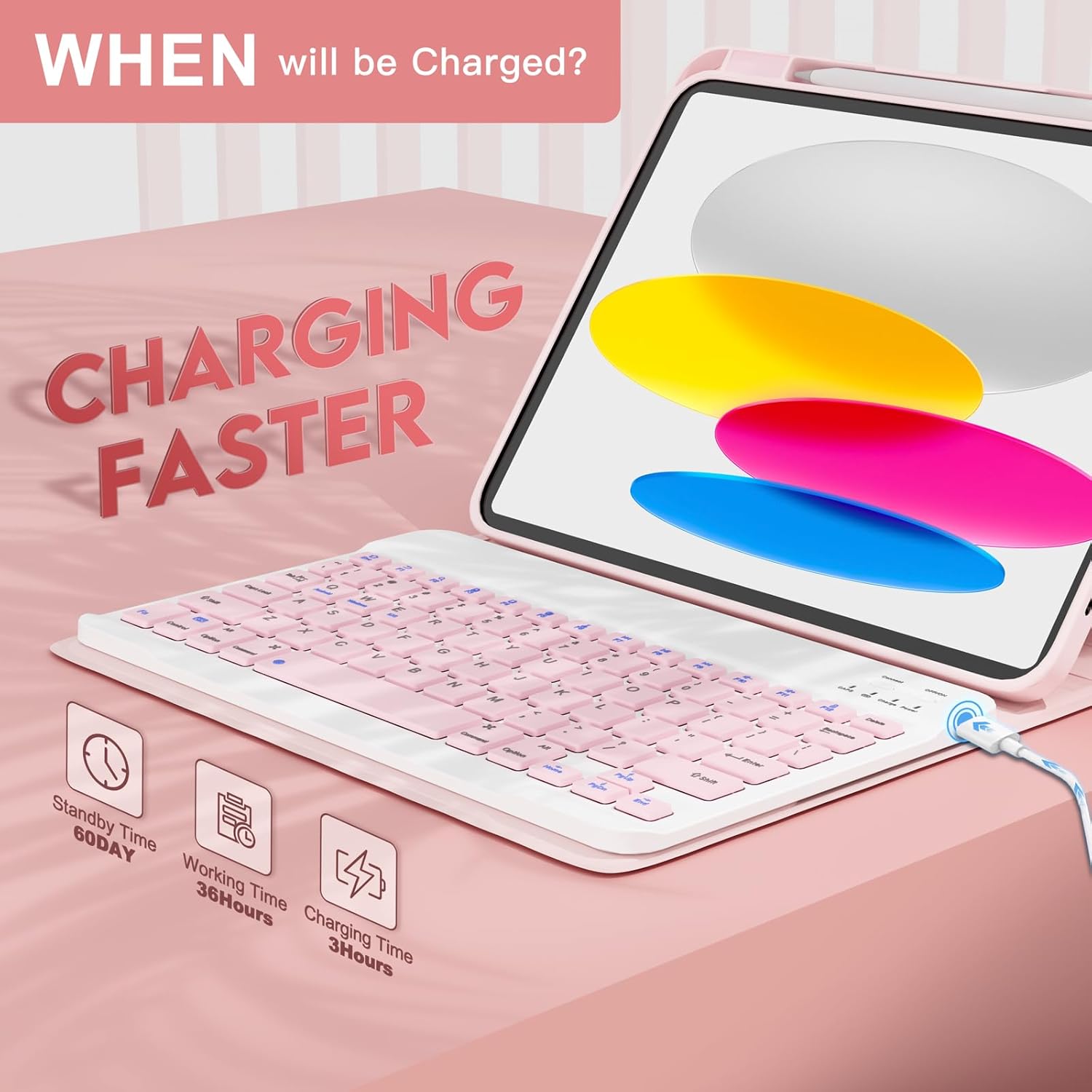 - 【Buit-in Pencil Holder】The ipad 10th generation keyboard features a top-mounted pencil dock with a precision-cut rear slot, enabling quick access to your Apple Pencil while keeping it securely stowed. This built-in storage solution prevents loss and ensures your stylus is always within reach.(Apple Pencil is Not included)