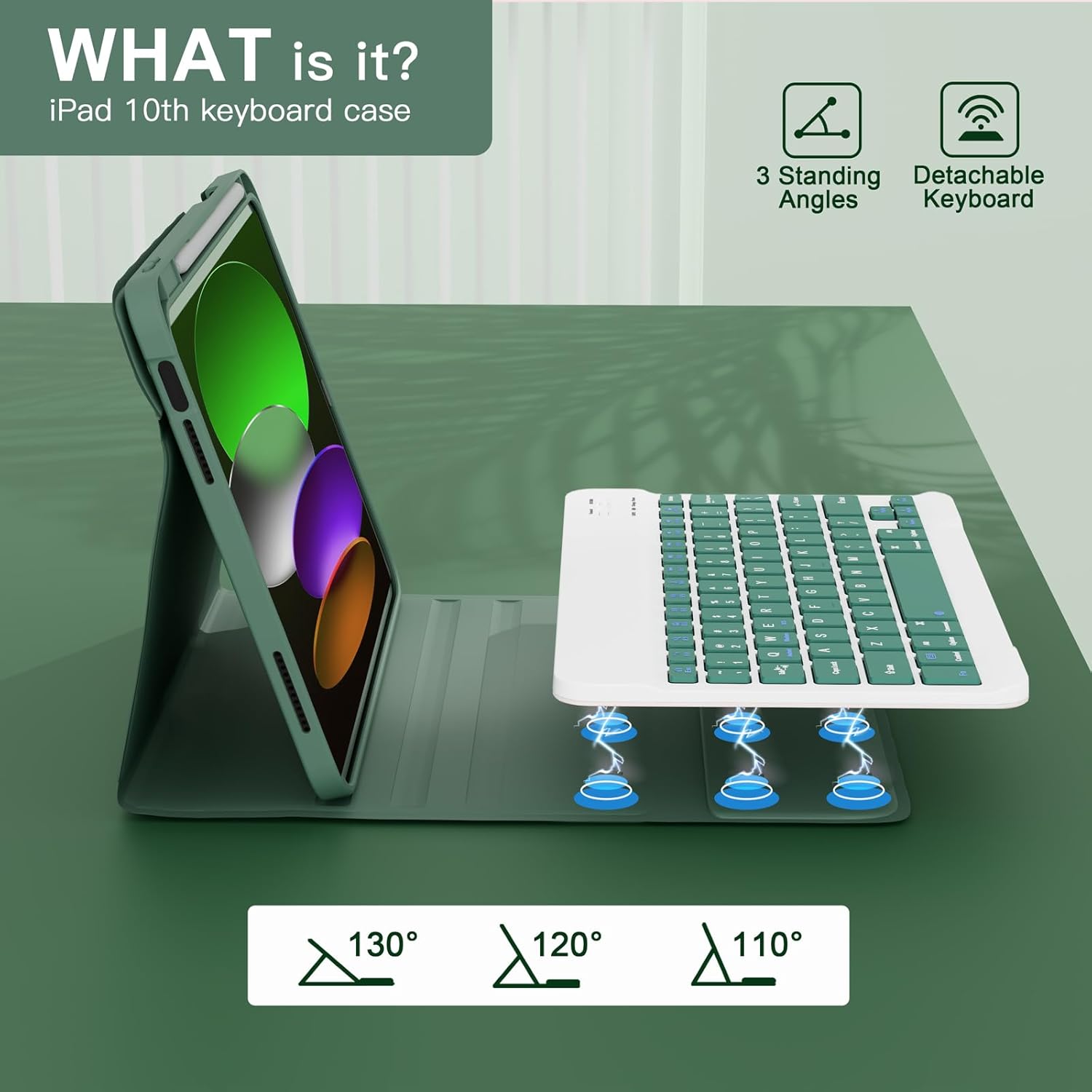 NOKBABO for iPad 11th 10th Generation Case with Keyboard, Magnetic Wireless Detachable Folio case with Pencil Holder, Keyboard for ipad 11th(A16,2025) & iPad 10th Generation(2022) - Midnight Green