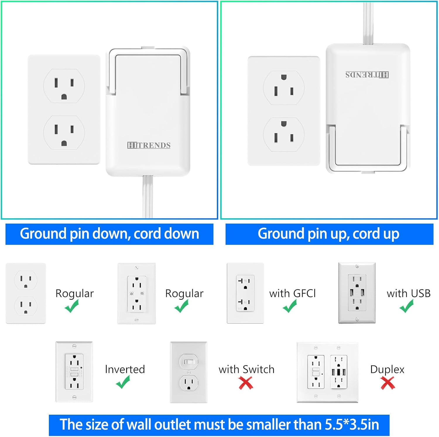 - Say Goodbay To Cluttered Plugs And Cords: Just attach the sleek flat power strip plug to your duplex receptacle, streamline your space with ourltra-thin electrical outlet cover. Say goodbye to clutter and hazards with our flat plug extension cord. Experience convenience and safety with our outlet cover extension cord.