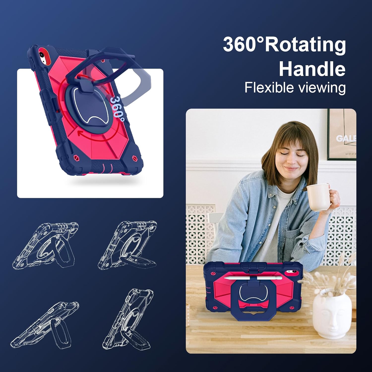 - 【Convertible Rotating Stand】Scnioy iPad 10 case equipped a 360°rotating and 180°flipping stand which enable multiply viewing angles for your comfort surfing, reading ,or sketching