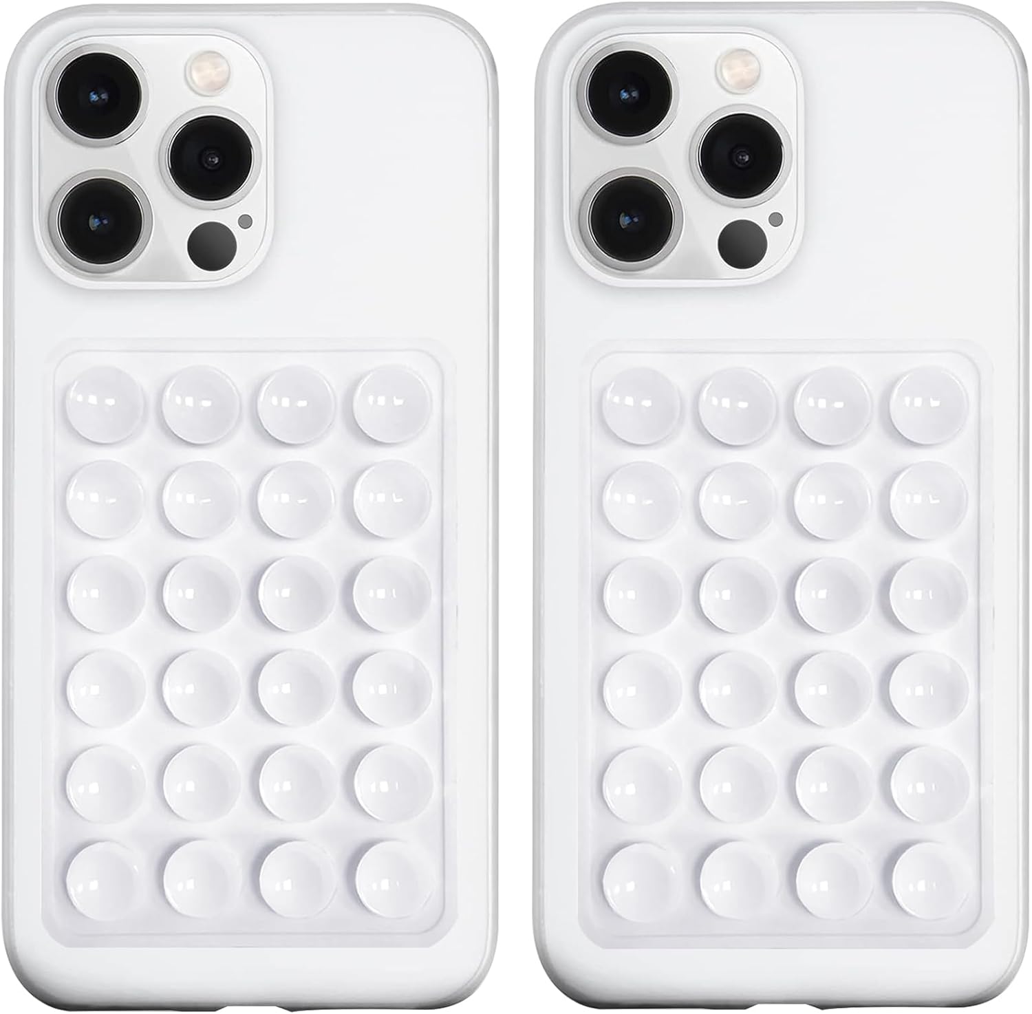 2 Pack Silicone Suction Phone Case Mount, Silicon Adhesive Phone Grip for Smartphones, Hands-Free Mirror Shower Phone Holder for Selfies, Tiktok Videos (White)
