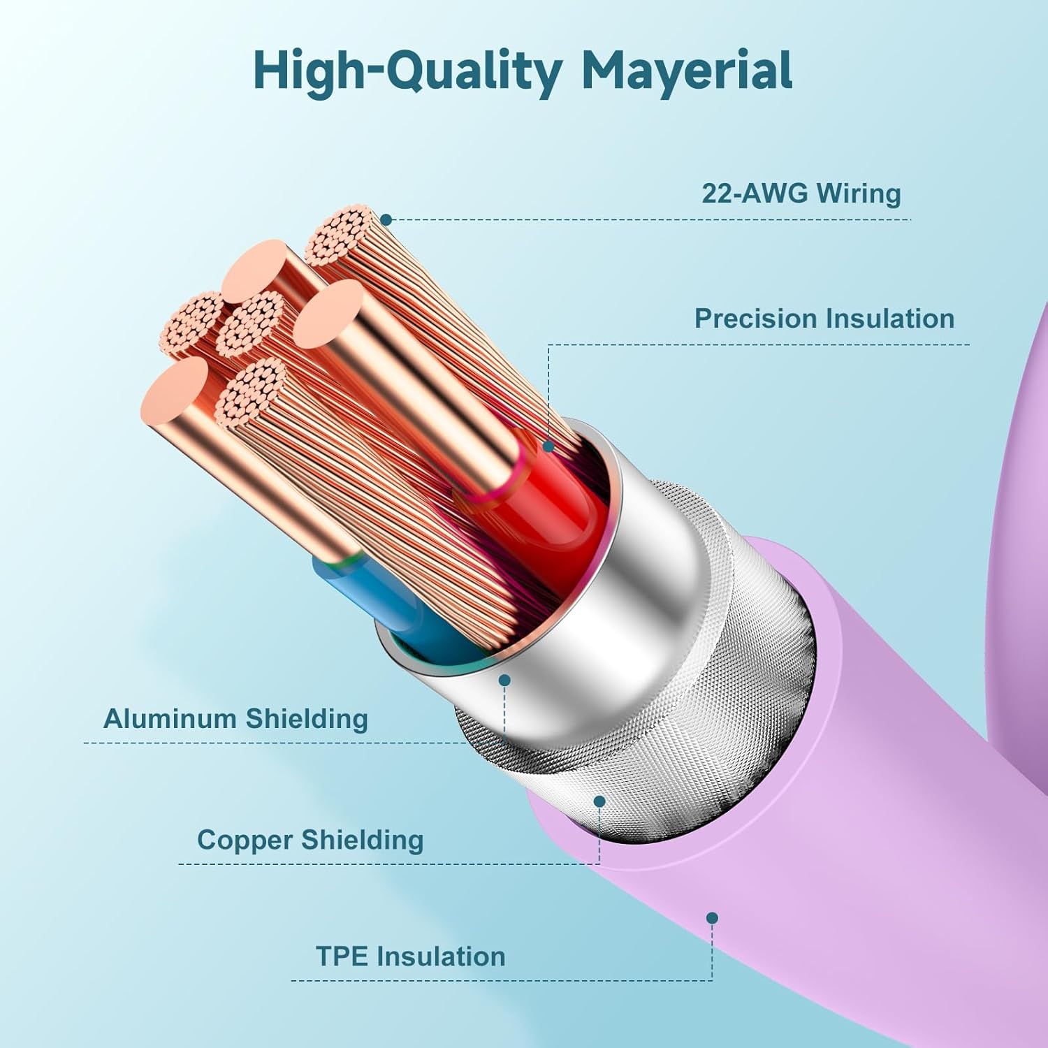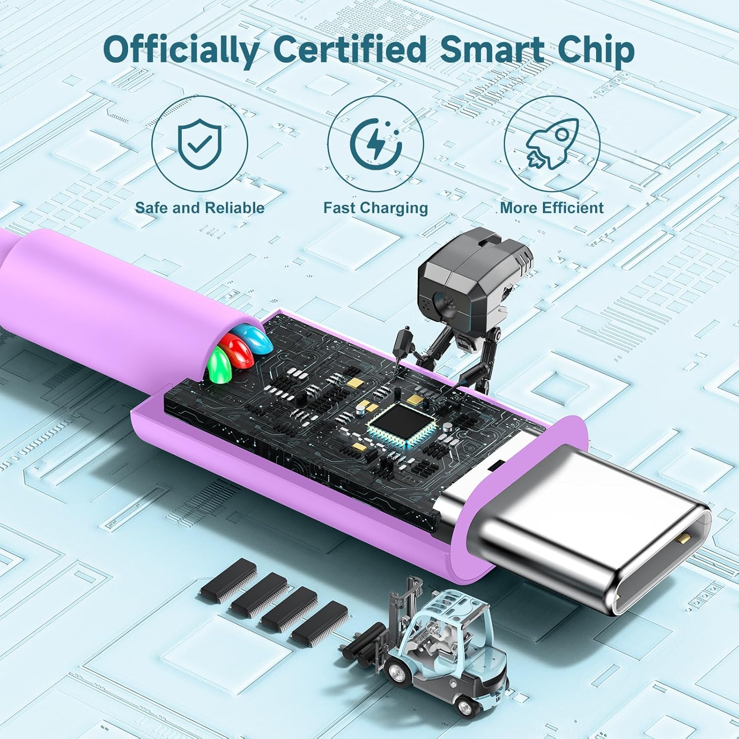 60W USB C to C Cable [3Pack] iPhone 15 Fast Charging Cable,6ft Long USB-C to USBC Power Cord for iPhone 16/15 Pro Plus Pro Max, MacBook Pro Air/IPad/iPad Pro 12.9/11,AirPods 4(Purple)