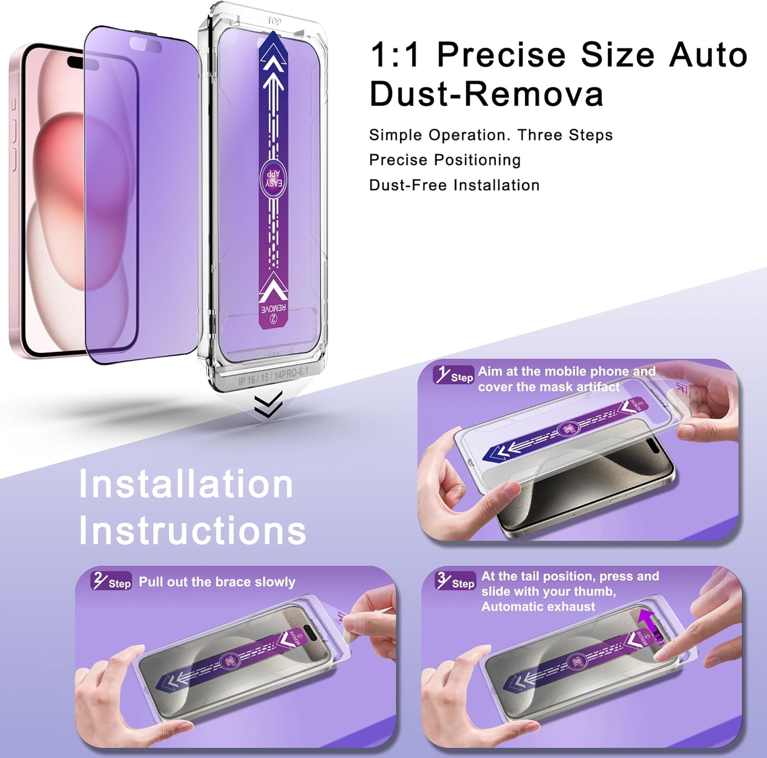 - Automattc Dust Removal Technology:Say goodbye to installation hassles with our iphone 16 screen protector Simply close and pull to automatically align and remove dust—no more worries about air bubbles or dirt. Watch our installation video for easy steps and tips for the second pack. Perfect for those using a screen protector iphone 15