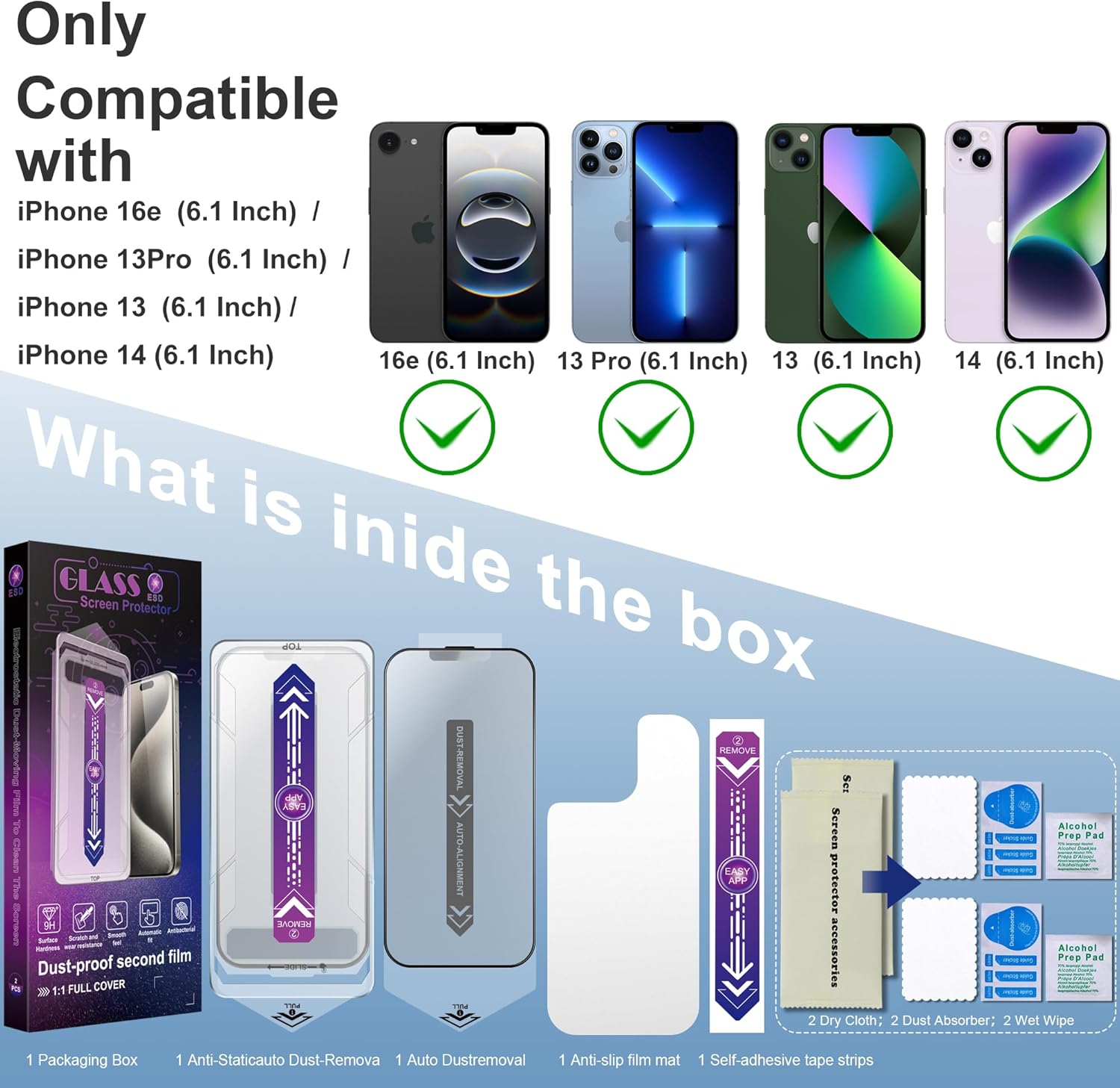 - Screen Protector Compatible::Designed specifically for iPhone 16e and iPhone 14 and iPhone 13 and iPhone 13 Pro screen protector guarantees 100% touch accuracy. Please note, it is not compatible with other iPhone models.