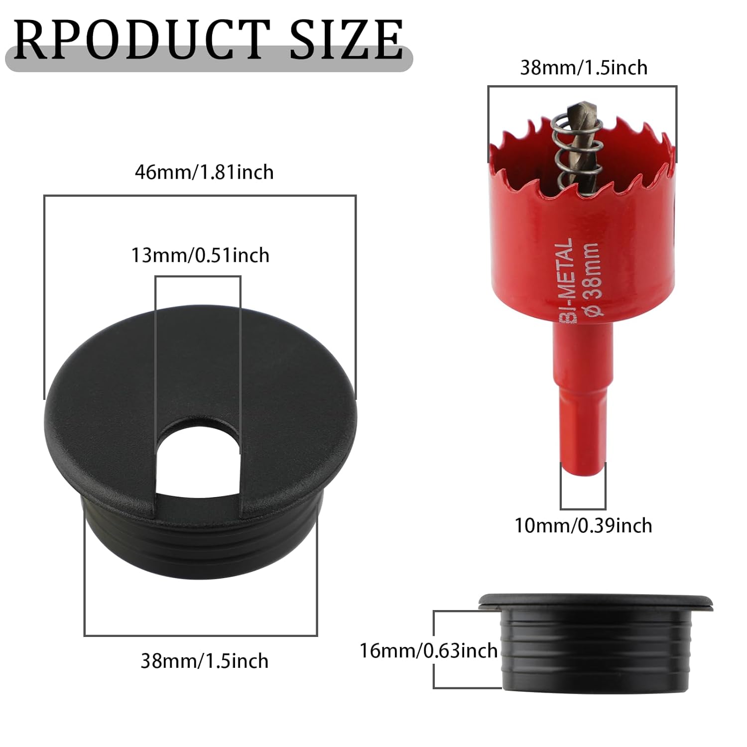 - 【Package Content】You will receive 12pcs 1.5 Inch/38mm black desk grommets with1pack* 1.5 Inch/38mm Hole Saw in the package.The cable grommets are made of sturdy abs engineering grade plastic,and suitable for 1.5 Inch/38mm holes.Durable and Corrosion Resistance.