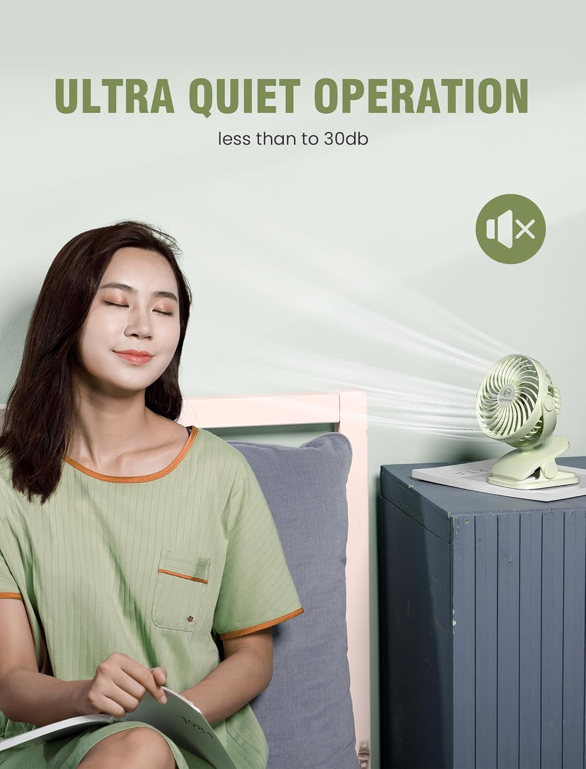 - 【ULTRA-PORTABLE 2-in-1 DESIGN】-Combines clip fan + desk stand in one (0.61 lb). Fits strollers, golf carts, offices, gyms, and travel bags—take comfort everywhere