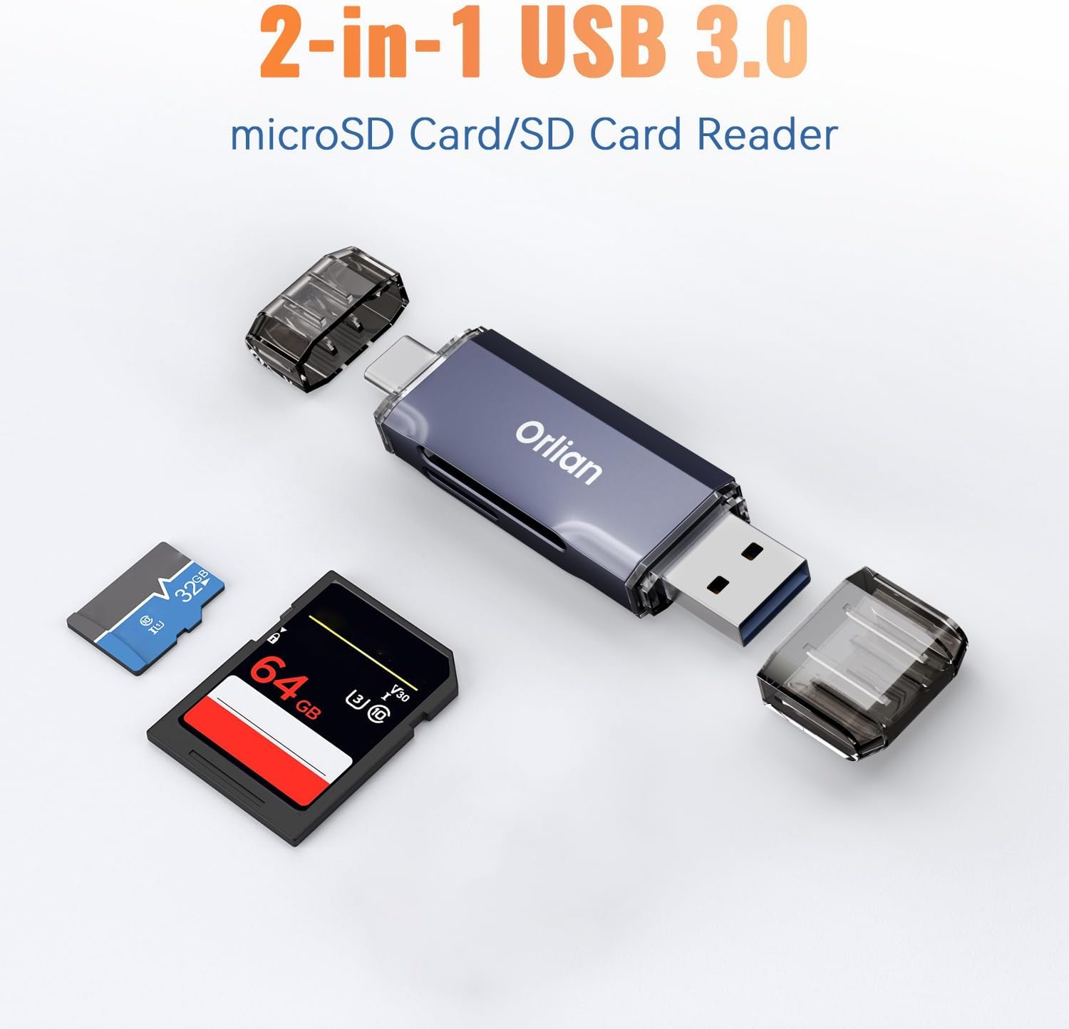 - 【Durable and portable】The Orlian memory card reader is made of wear-resistant metal with an aluminum housing that dissipates heat quickly and comes with a lid for better water and dust resistance, making it a great companion for you whether you're working or traveling.