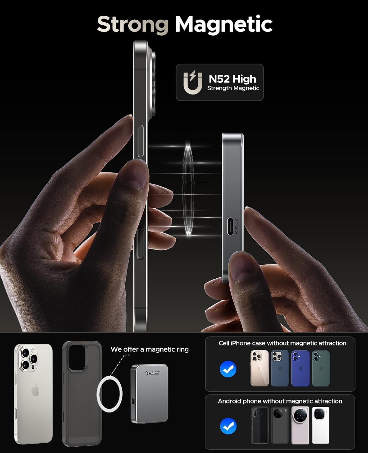 ORICO 1TB Magnetic SSD, PD100W Charging, 4K ProRes HDR, 1000MB/s USB 3.2, Portable External Drive for iPhone 16/15, Laptops, Tablets - Aluminum Alloy, Drop Resistant - K10