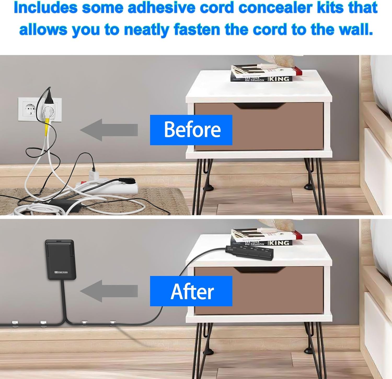 - Say Goodbay To Cluttered Plugs And Cords: Just attach the sleek flat power strip plug to your duplex receptacle, streamline your space with ourltra-thin electrical outlet cover. Say goodbye to clutter and hazards with our flat plug extension cord. Experience convenience and safety with our outlet cover extension cord.