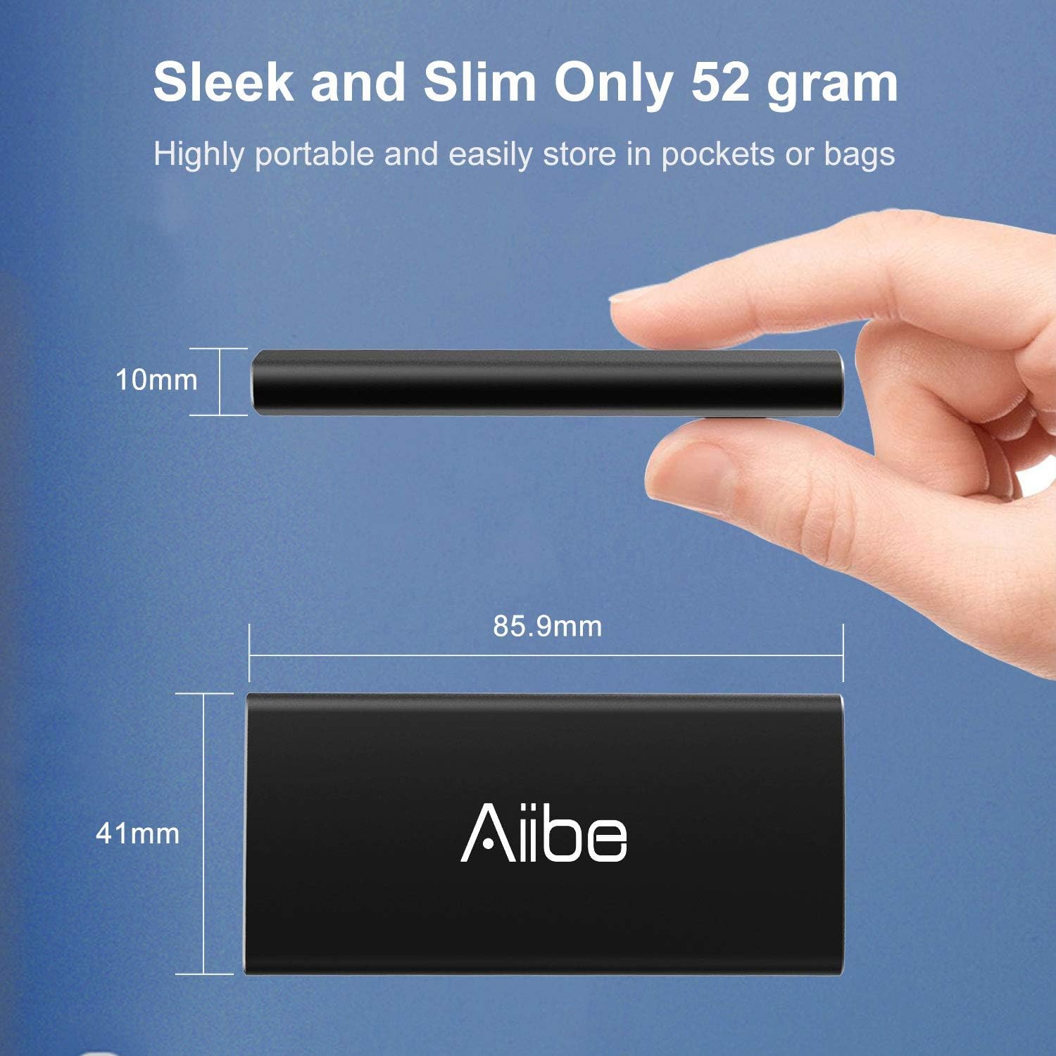 Aiibe External SSD 250GB External Hard Drive USB C Portable SSD, Up to 500MB/s, USB 3.1, External Solid State Drive 250GB for Laptop, Mac, PS4 (Black)
