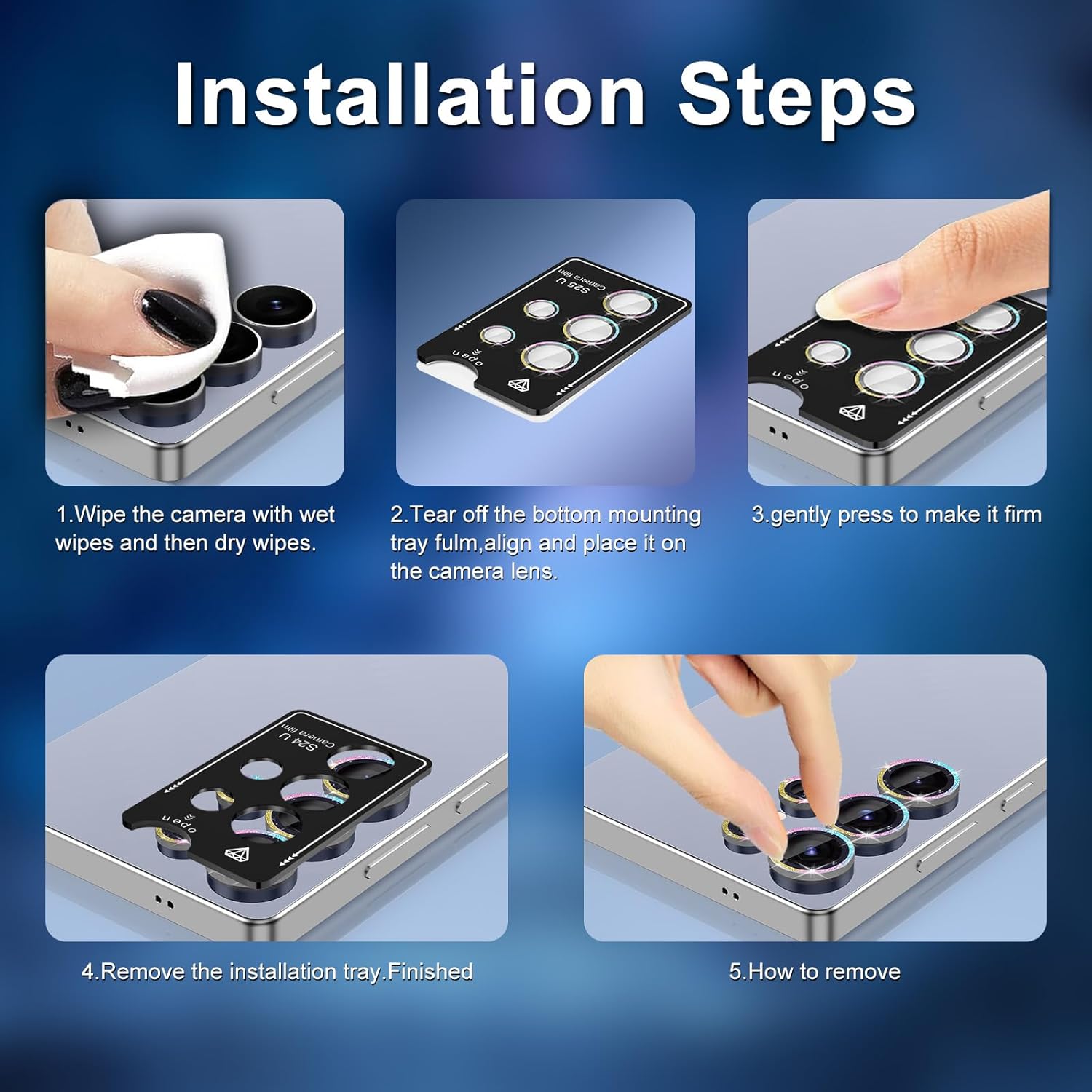 - 【Compatible Model】This ultra-thin camera lens protector only compatible with Samsung Galaxy S25 Ultra. DO NOT FIT other models. Easily fit and match with most phone cases.